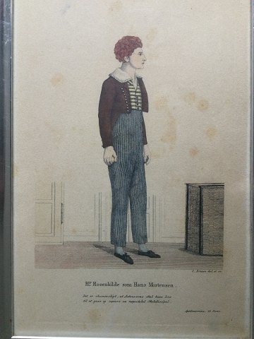 Skuespiller Christian Niemann Rosenkilde (1786-1861) som HANS MORTENSEN i Johan Ludvig Heibergs APRILSNARRENE 23. scene.