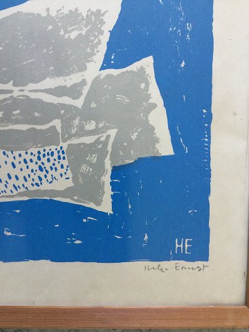 Helge Ernst (1916-91): Komposition. Farvelitografi på papir. Nummer 437/500 Sign.: Helge Ernst (bly) og HE i trykket Indrammet 73x53 32709
