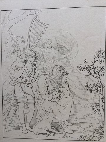 C.G. Kratzenstein-Stub (1783-1816): Ossian og Alpins Søn hører Malvinas Ånd gribe i Harpens Strenge 1815. Radering på papir Efter maleri af C.G. Kratzenstein-Stub. Usigneret Uden ramme 48x39 15725