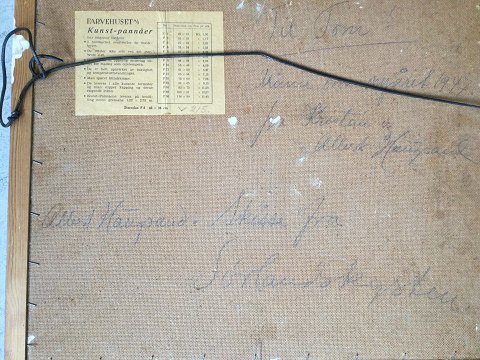 Bagpå dedikation 1947 fra Albert Haugsand og hustru Kristine Haugsand (1908-2003) - født Hagen.