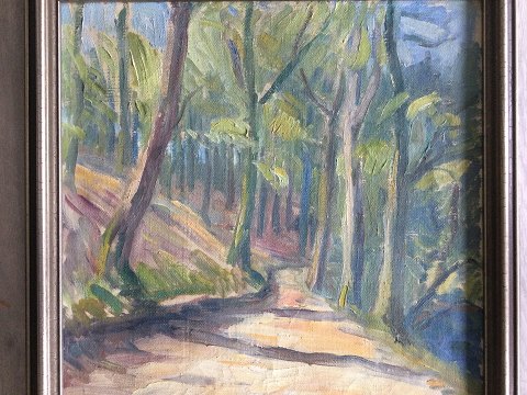 Martin Kaalund-Jørgensen (1889-1952): "Vej gennem skov" 1937. Olie på lærred. Sign.: M- Kaalund J. 37 60x59 (69x68) 21725