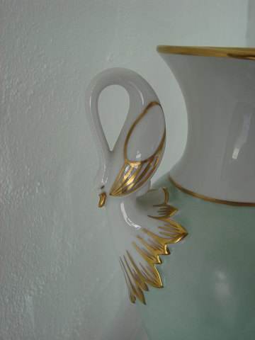 Par tyske prydvaser med svanehalshanke og lækker mat guld.