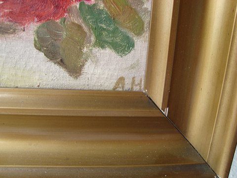 Ubekendt kunstner (20 årh): "Roser" Olie på lærred Sign.: AH 22x29 (32x39)