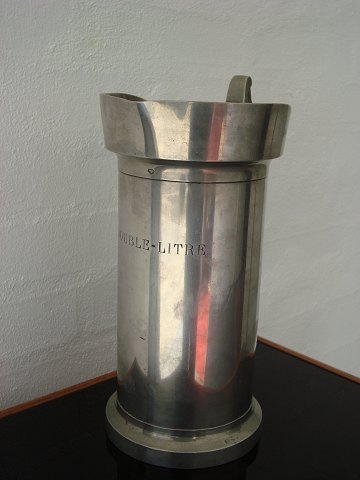 Fransk Tin lågkande. Indgraveret "Double-Litre" Forskellige stempler (se fotos) Højde 28 cm - diameter 13 cm.