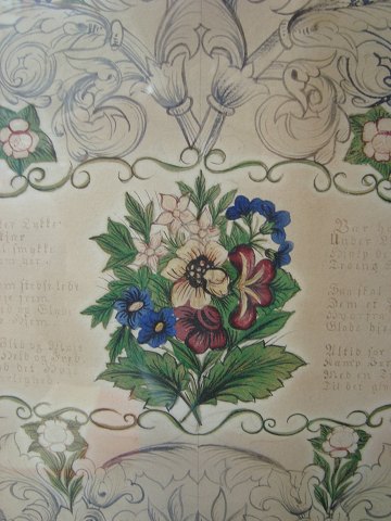 Meget smuk udført tegning og akvarel med digt (se "oversættelsen").