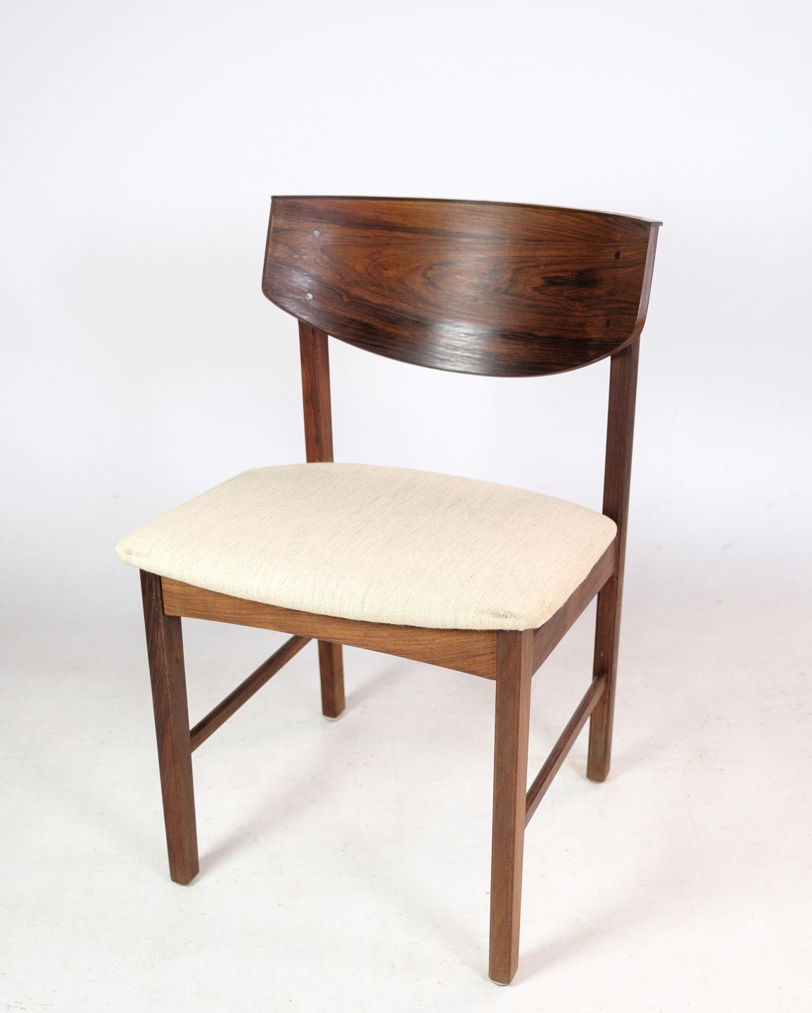 SoldSet of six dining chairs in rosewood with light fabric of Danish design from around the 1960s.
