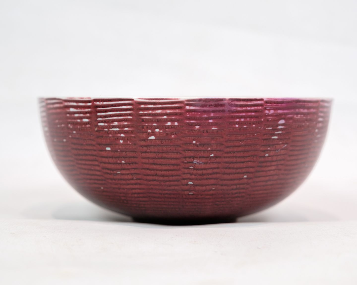 Ceramic bowl, model 20.717, with oxblood colored glaze, designed by Axel Salto for Royal Copenhagen. The bowl is a classic example of Salto's experimental approach to ceramics, where he used many different glazes to create deep and rich tones.