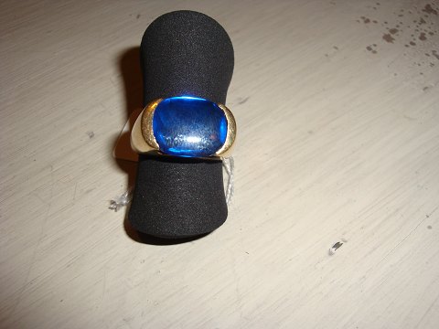 SolgtHerrering i 14 kt med super flot syntetisk blå sten. Str. 63.