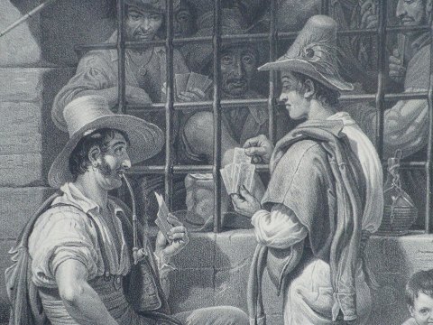 Antikt kobberstik fra slutningen af 1800 tallet. Københavnsk hverdagsmotiv af Nicolai Wilhelm Marstrand. H: 50cm & B:46cm med ramme.