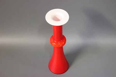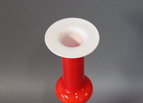 Coral flashed White opal glass vase from the series "Carnaby". The glass vase was designed by Christer Holmgren c. 1960 and manufactured by Holmegaard.