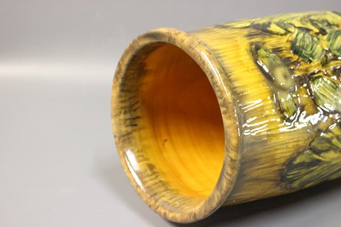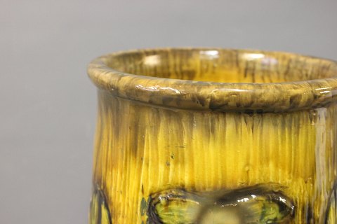 Stor keramik Danico gulvvase i gul glasur med flot mønster. Vasen er i fin stand.