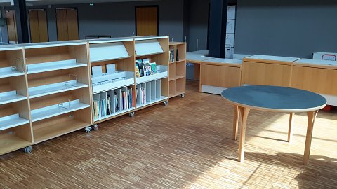 Vi har i vinter restaureret møbler fra et brandskadet skolebibliotek. På billederne ses møbler før og efter restaurering.