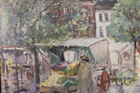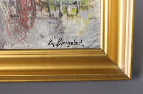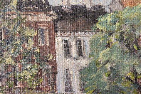 SolgtMaleri med motiv af Københavns gader af Lis Bjergsted.