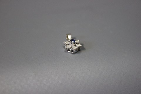 SoldSmall pendant in 14 ct. White gold with sapphire and 6 small diamonds.
