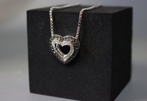 Necklace in 14 ct. White gold with a pendant of Black and White diamonds.