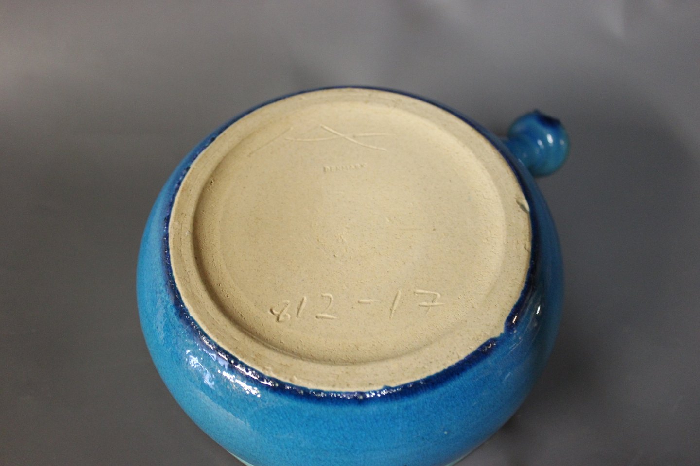 Ceramic serving bowl with lid and a blue glaze by Herman A. Kähler.