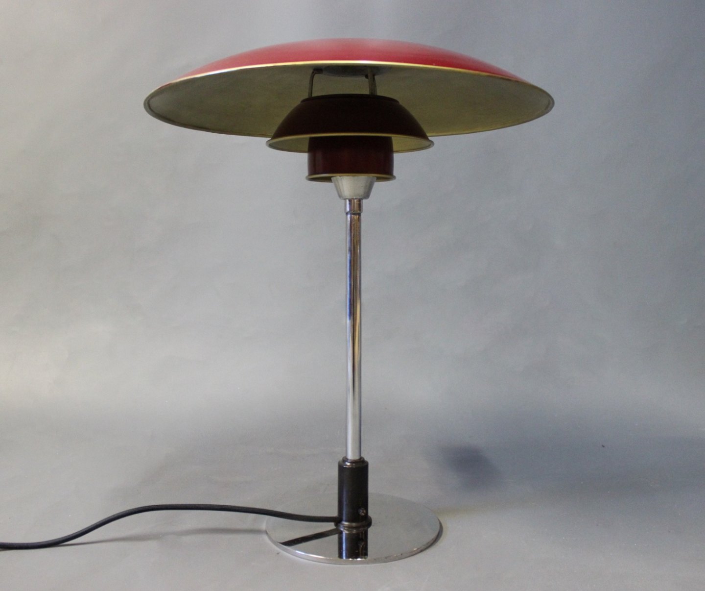 Denne PH bordlampe har vi restaureret fuldstændig efter kraftig brandskade.