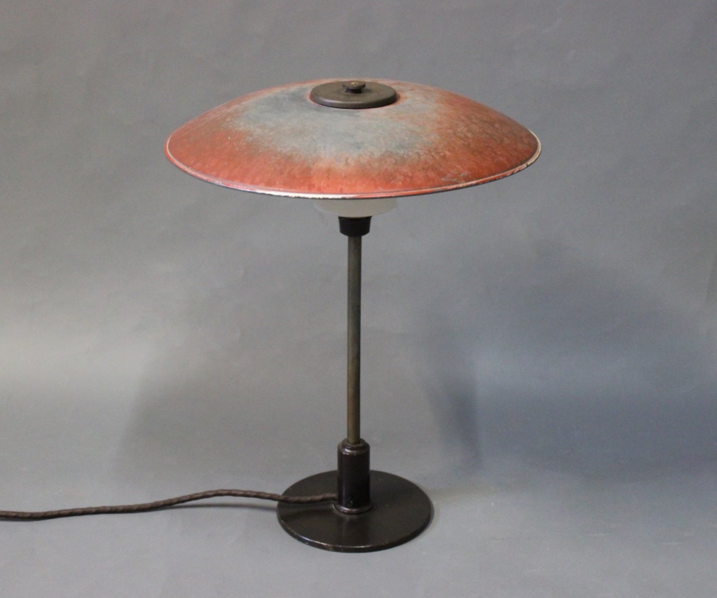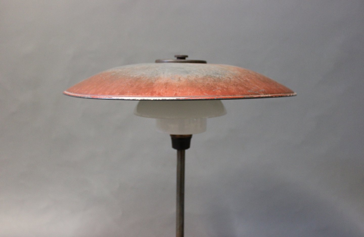 SolgtPH 3,5/2,5 bordlampe fra 1930erne designet af Poul Henningsen og fremstillet hos Louis Poulsen. Lampen er af opal glas og bruneret messing.