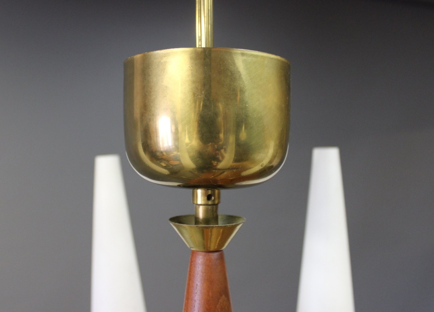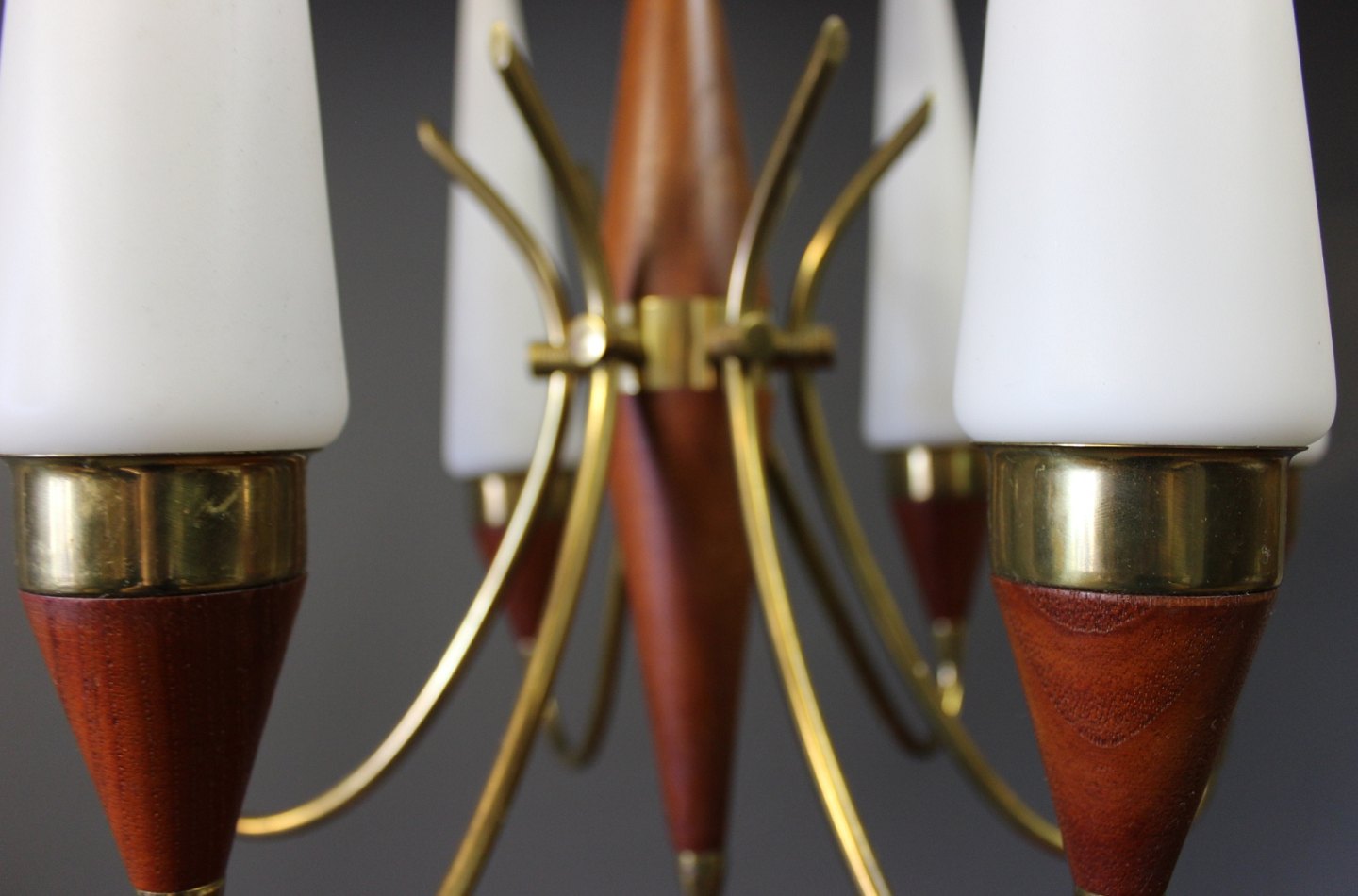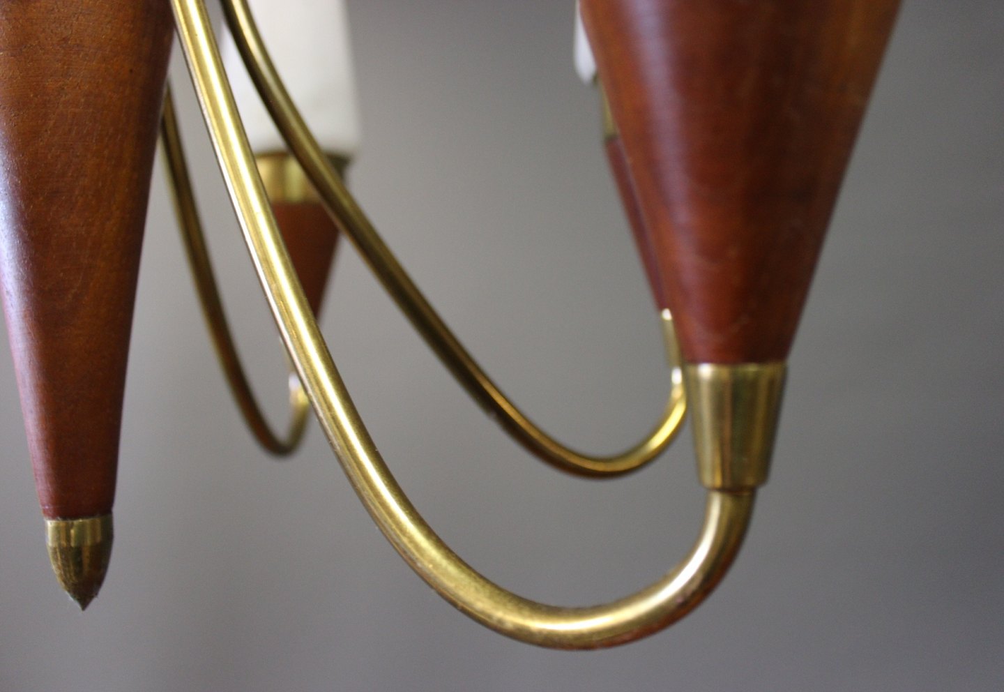 SolgtLysekrone i teak og messing designet af Bent Karlby og fremstillet af LYFA fra 1960erne. Lampen er i rigtig fin brugt stand.