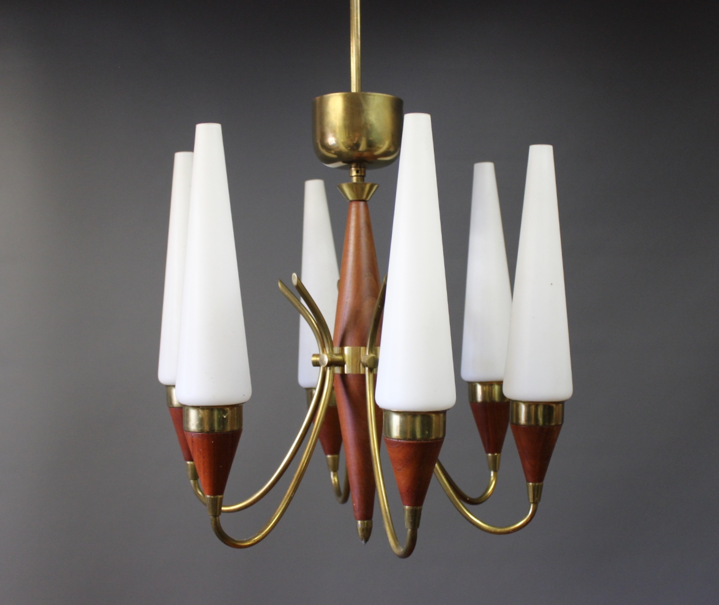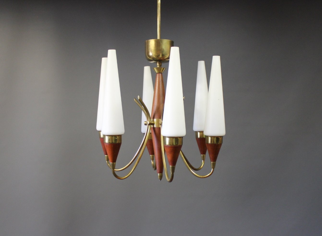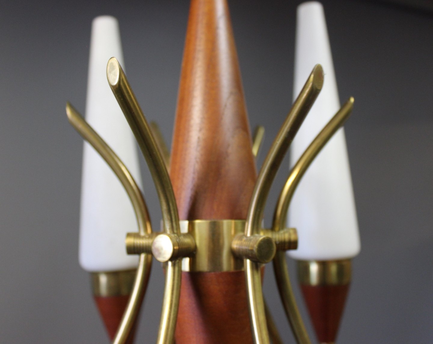 SolgtLysekrone i teak og messing designet af Bent Karlby og fremstillet af LYFA fra 1960erne. Lampen er i rigtig fin brugt stand.