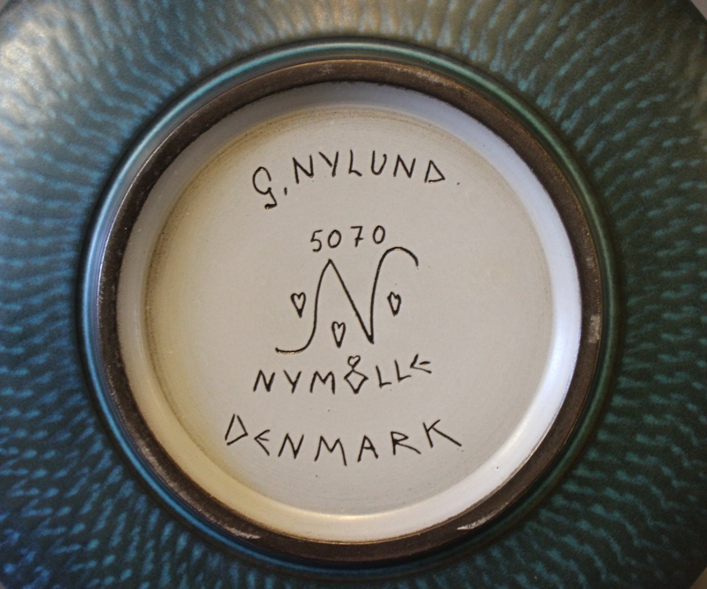 SolgtMørkeblåt fad af Gunnar Nylund for Nymølle, nummeret 5070.