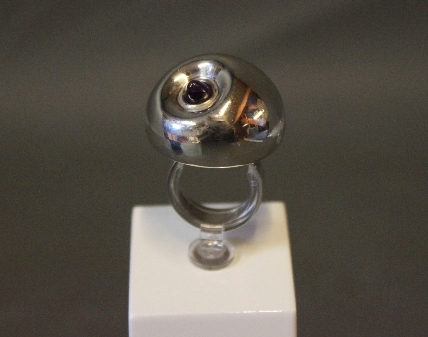 SolgtRing i 925 sterling sølv med lilla sten stemplet HCM af M.P.Christoffersen.