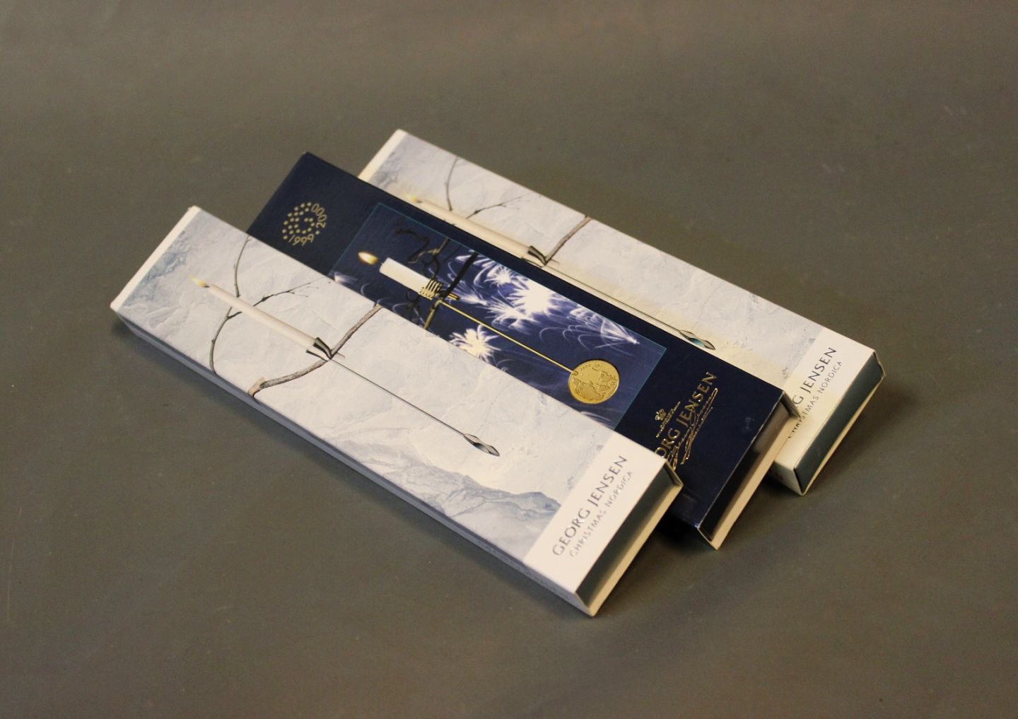 Lysholdere, to fra serien Christmas Nordica, som er designet af Maria Berntsen og en Millenium lysholder fra år 2000, alle af Georg Jensen.