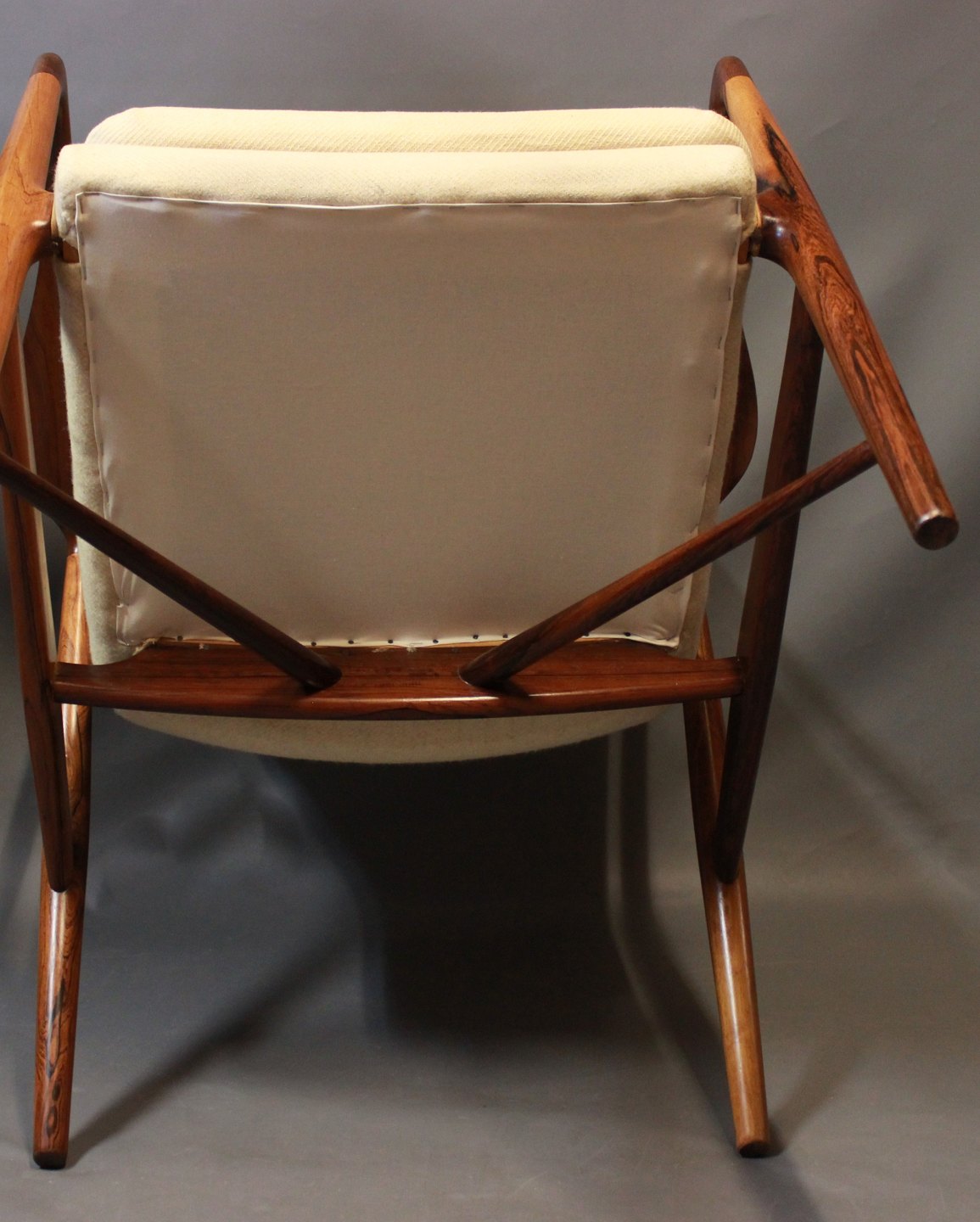 The NV45 recliner, designed by Finn Juhl in 1945 and manufactured by Niels Vodder in the late 1940s, is an excellent representation of Danish modernist furniture design. This chair, made of rosewood and light wool, combines Juhl's unique sense of form and Vodder's sublime craftsmanship.