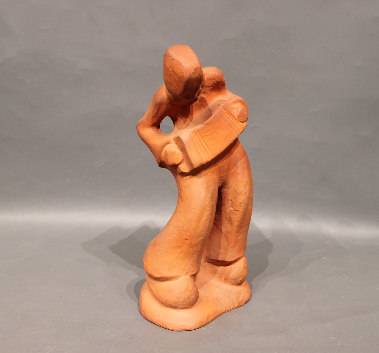 Large wooden figure of a man with an accordion by an unknown artist from around the 1960s.