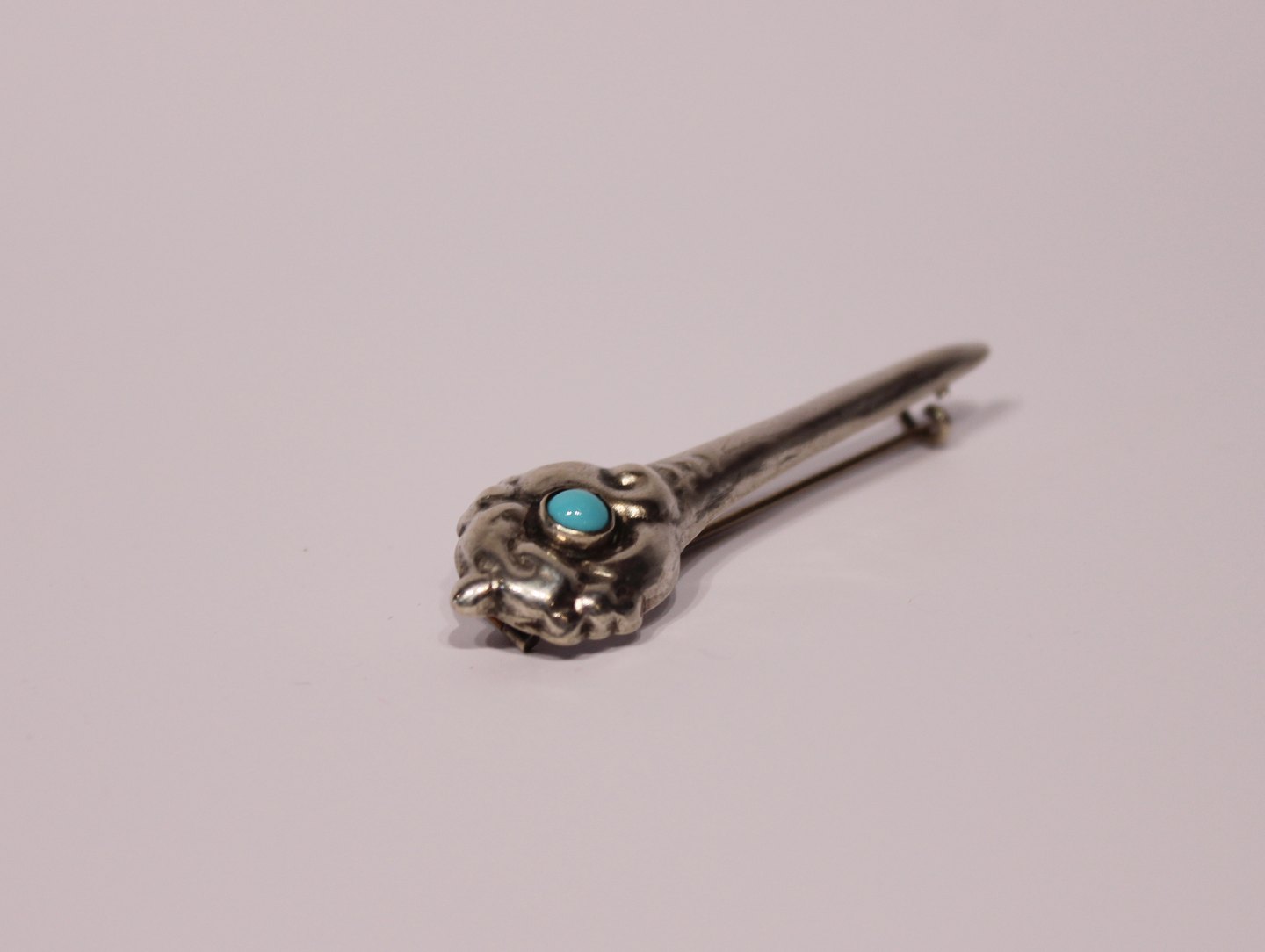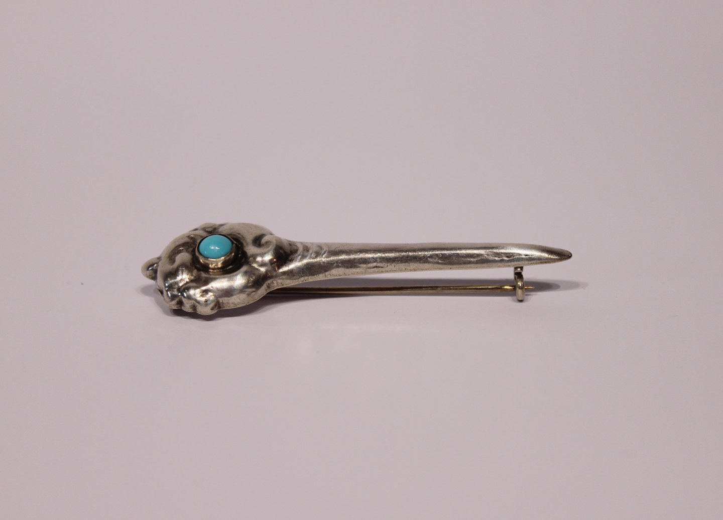 Simpel brooch with small blue stone, in 826 silver, stamped P&P by Petersen & Prahl.