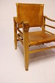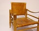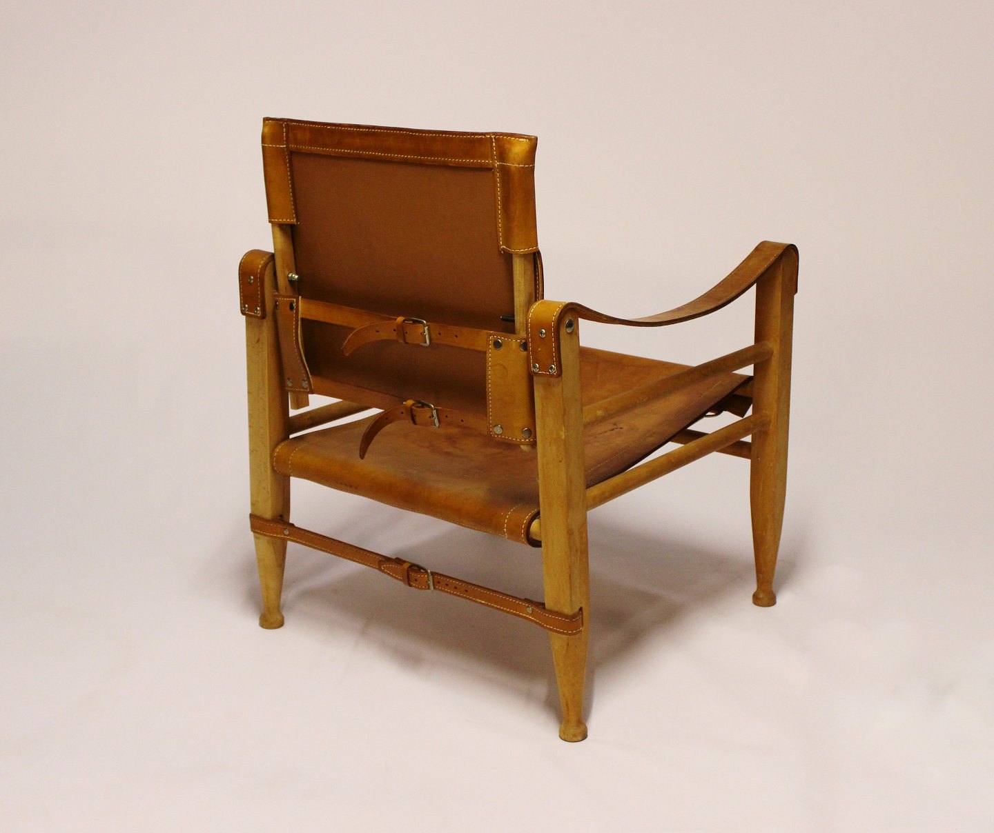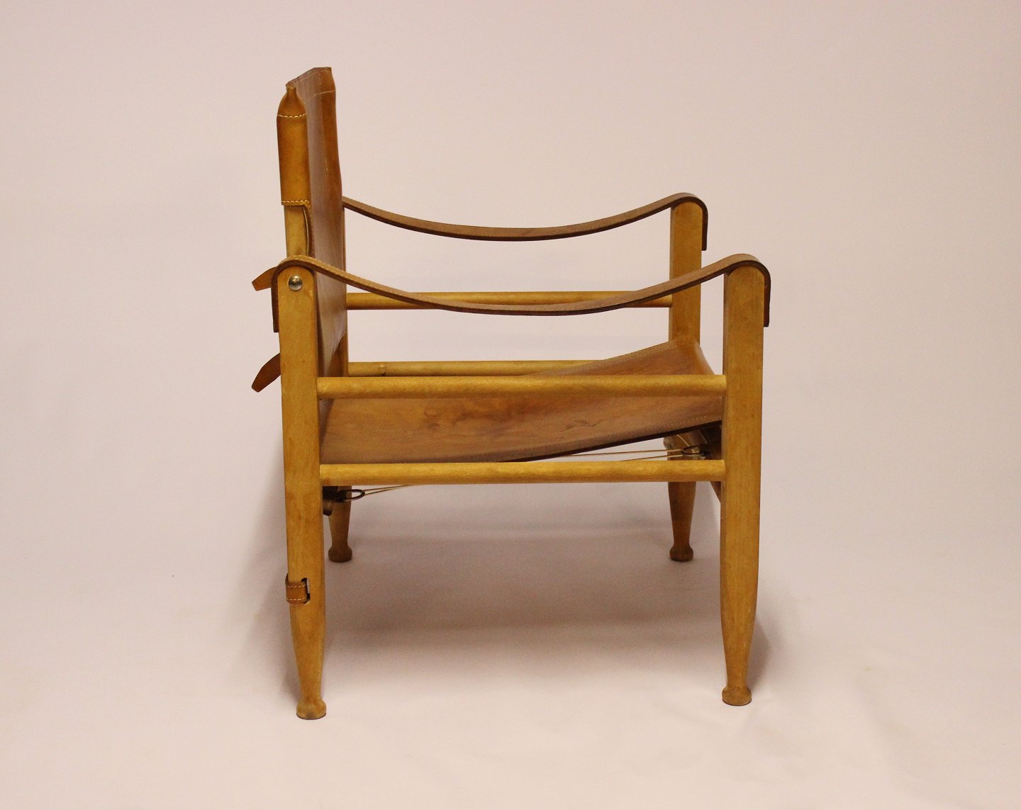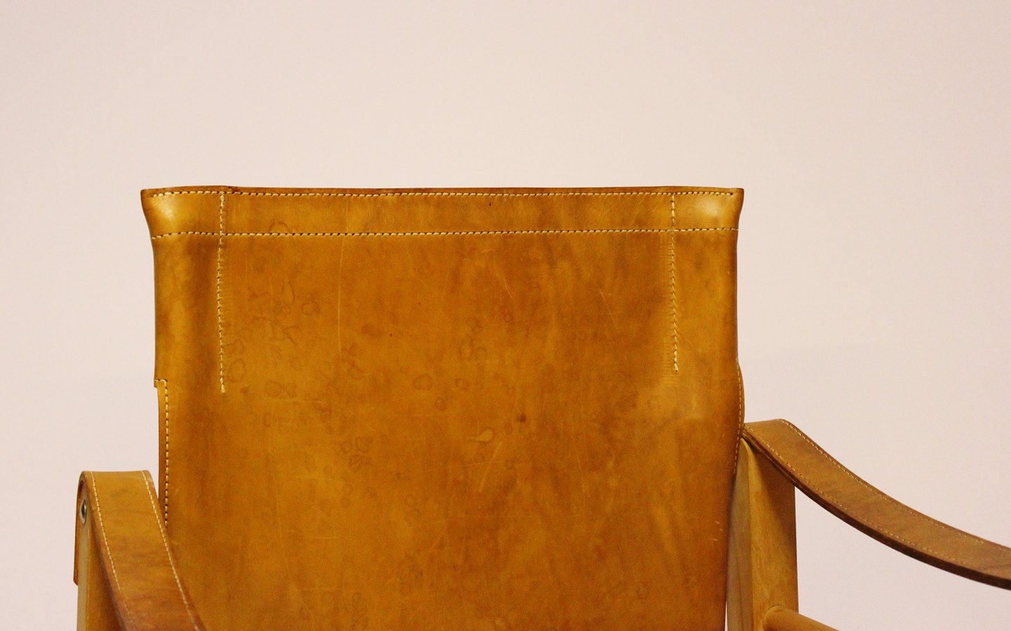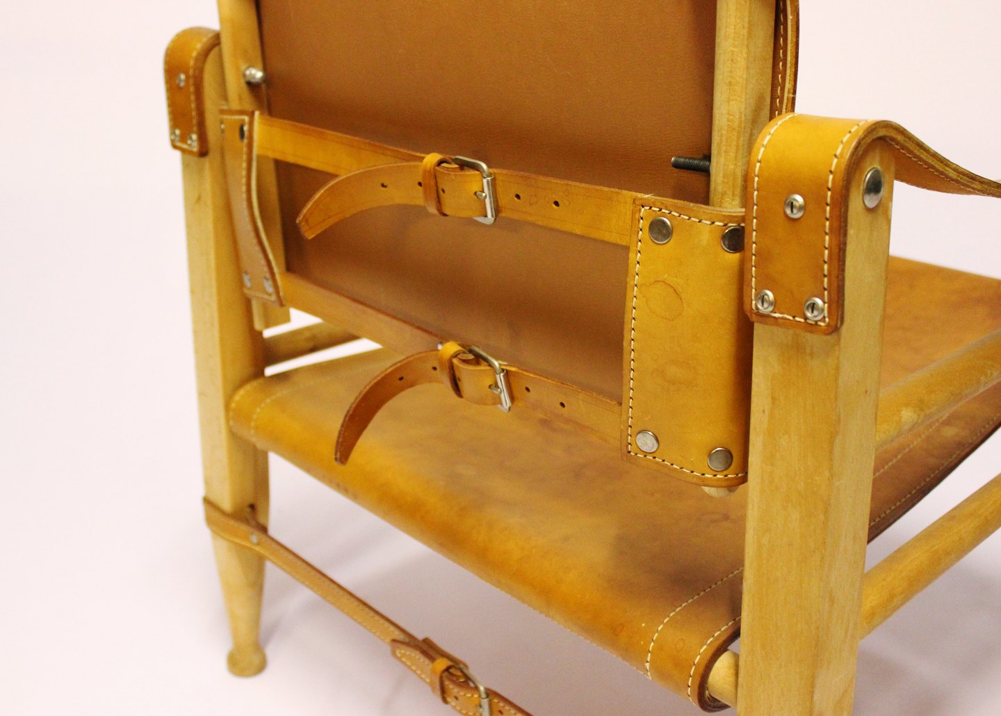 SoldA pair of Safari chairs designed by Aage Bruun and Son, of natural leather and solid wood, from the 1960s.