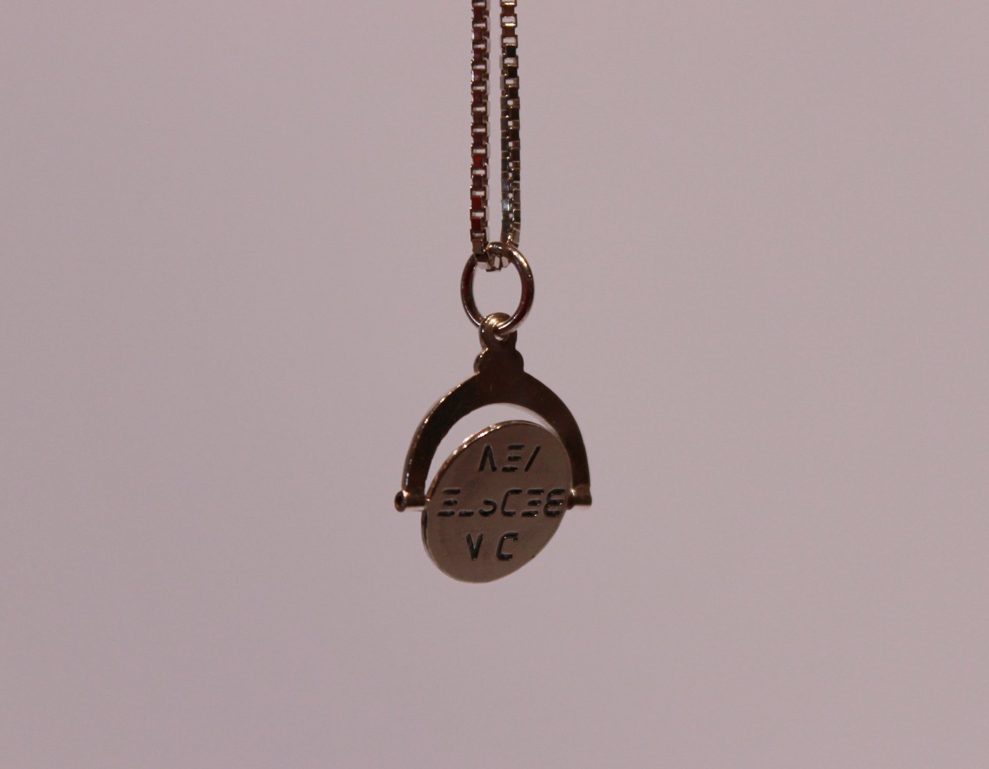 SolgtLille "dreje" vedhæng med symboler i sølv. Lignende kæde kan tilkøbes separat.