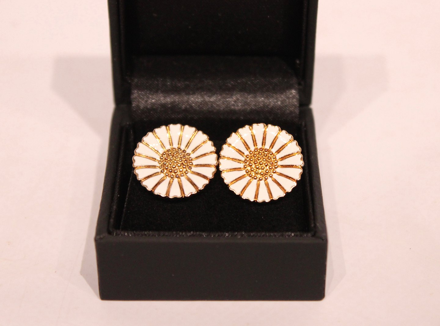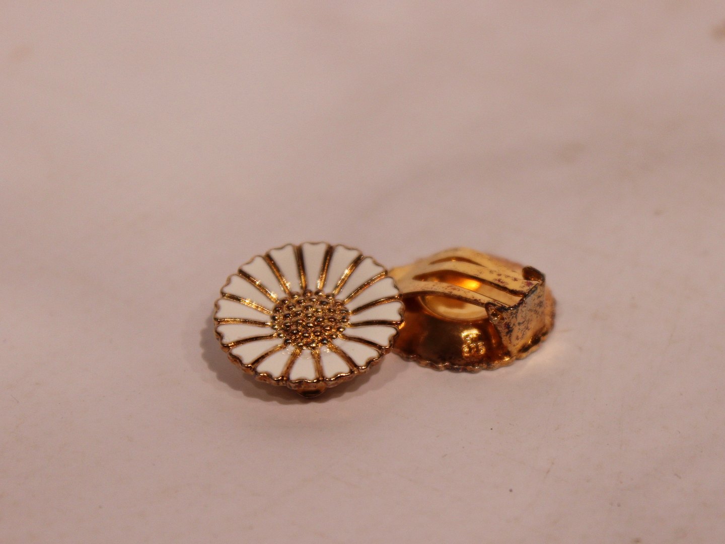 A pair of Daisy earclips of gilded 925 sterling silver and enamel, stamped BH by Bernhard Hertz.
