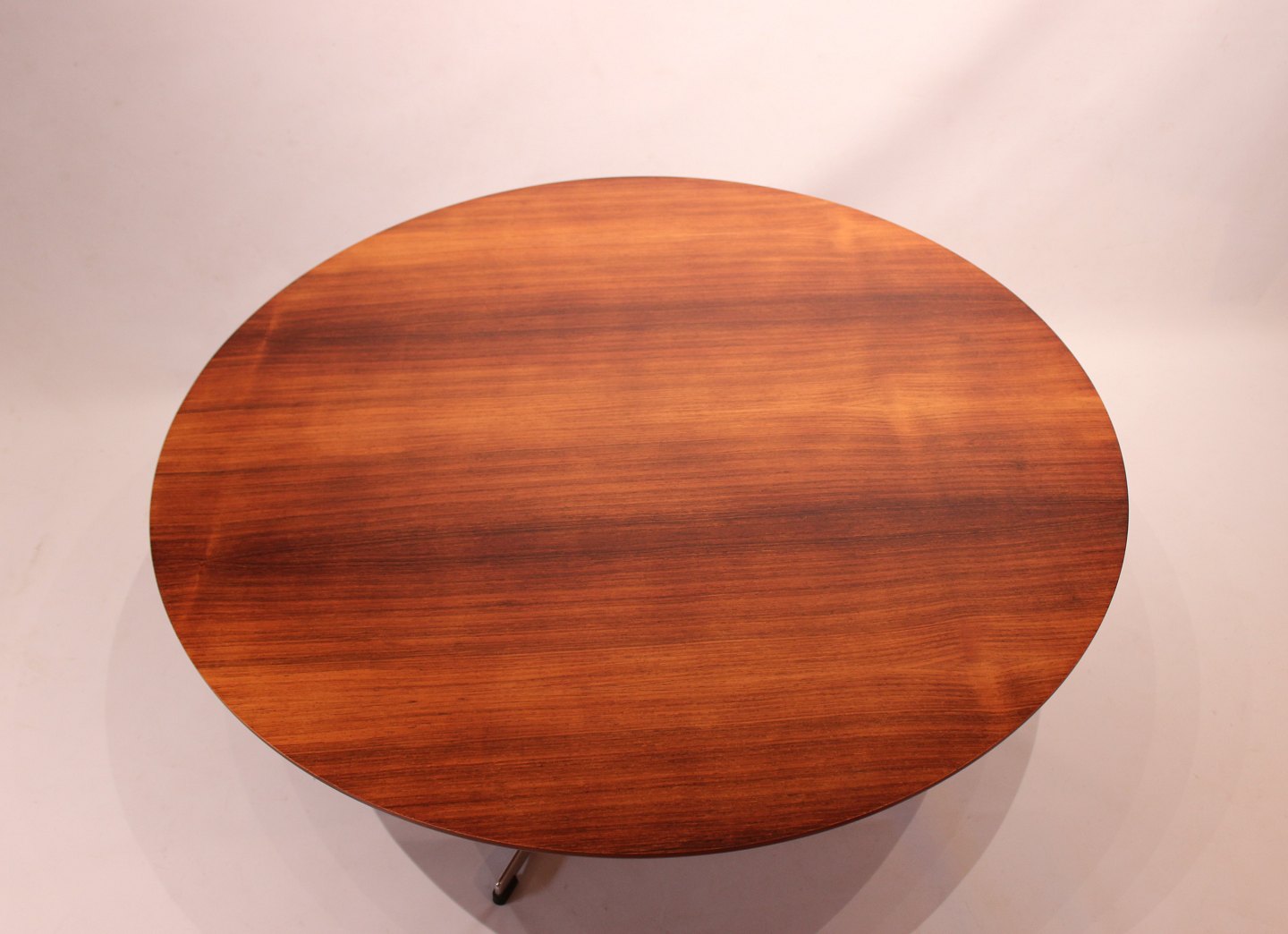 Rundt sofabord, model 3513, designet af Arne Jacobsen og fremstillet af Fritz Hansen i 1960erne. Bordet er af Palisander og i flot brugt stand.