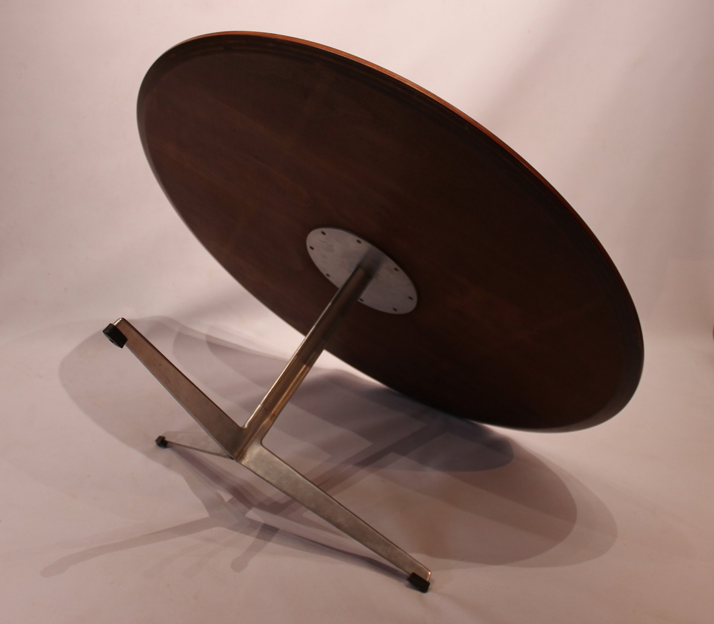 Rundt sofabord, model 3513, designet af Arne Jacobsen og fremstillet af Fritz Hansen i 1960erne.