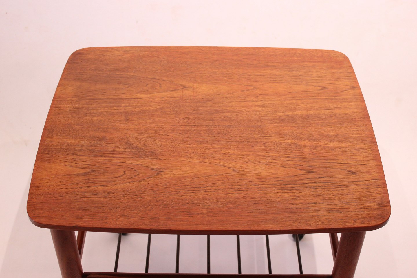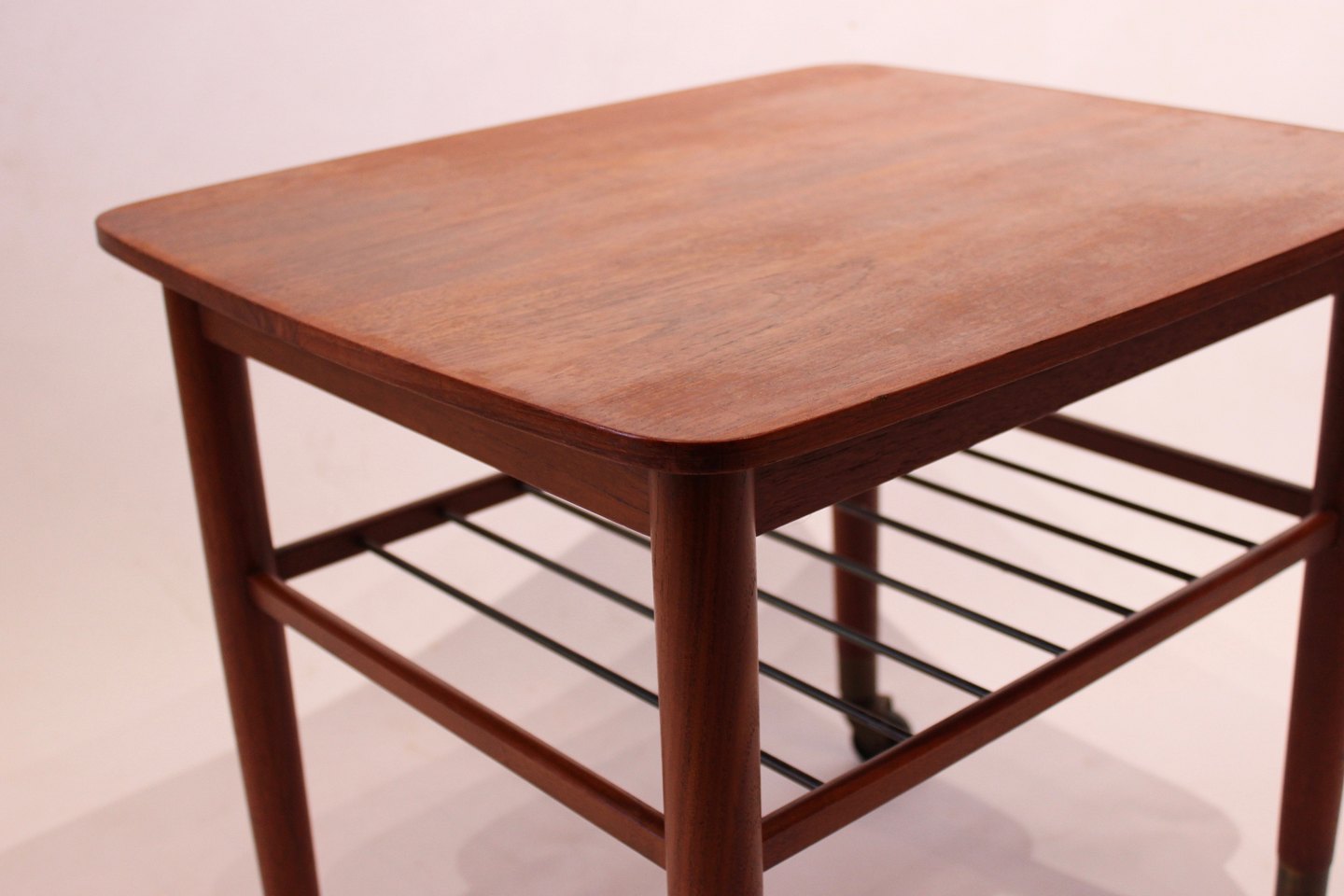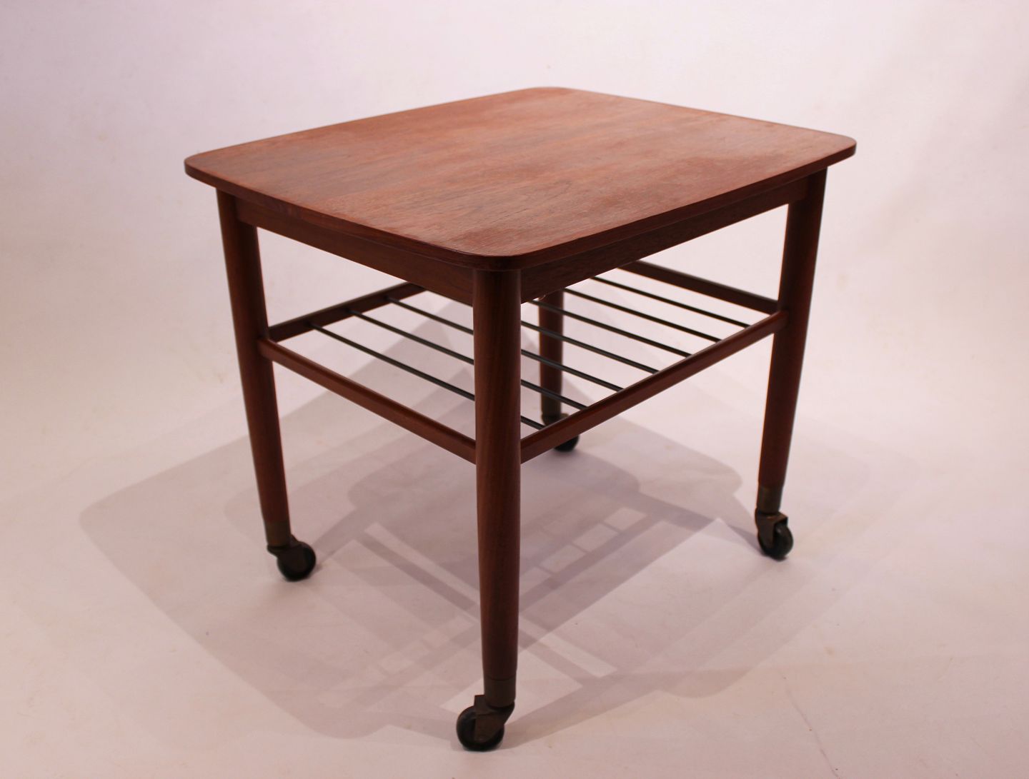 SolgtSidebord på hjul med hylde af teak og af dansk design fra 1960erne. Bordet er i flot brugt stand.