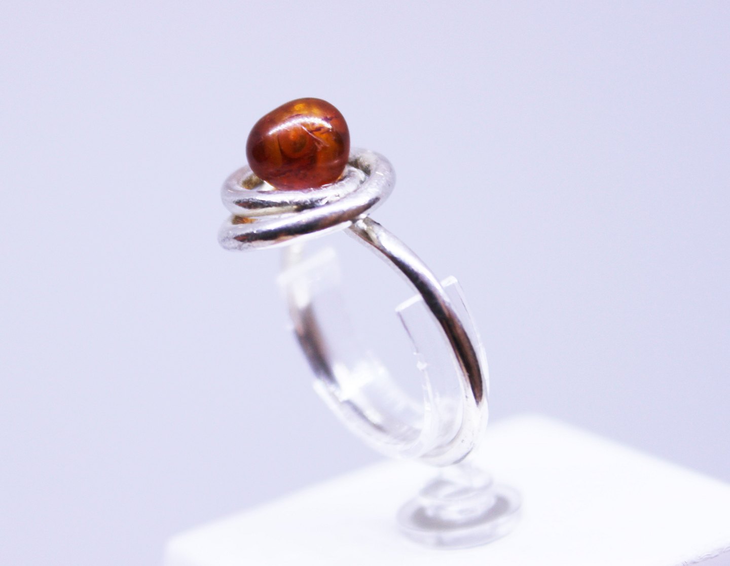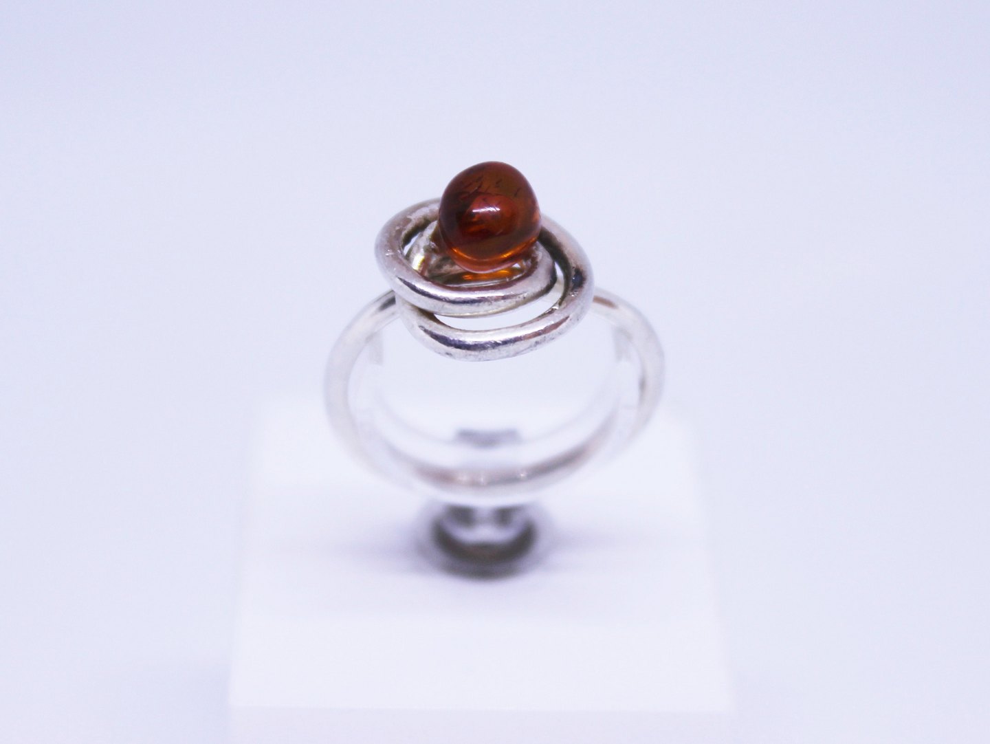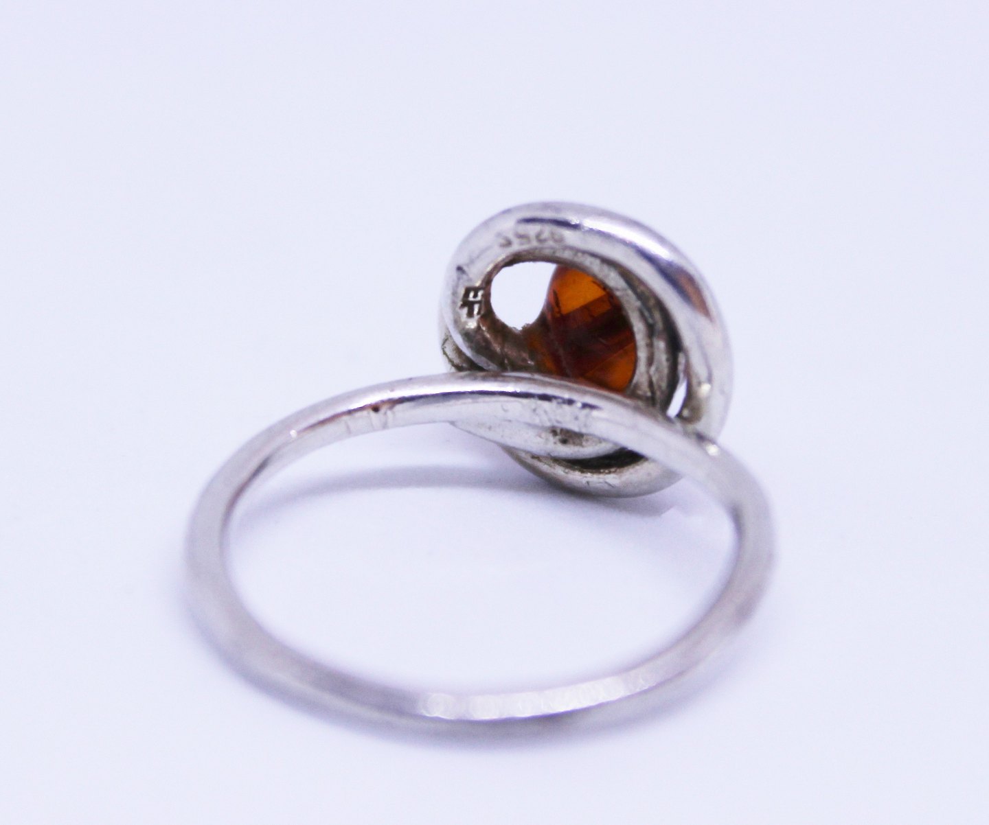 Ring of 925 sterling silver, decorated with amber and twisted silver, stamped EF.