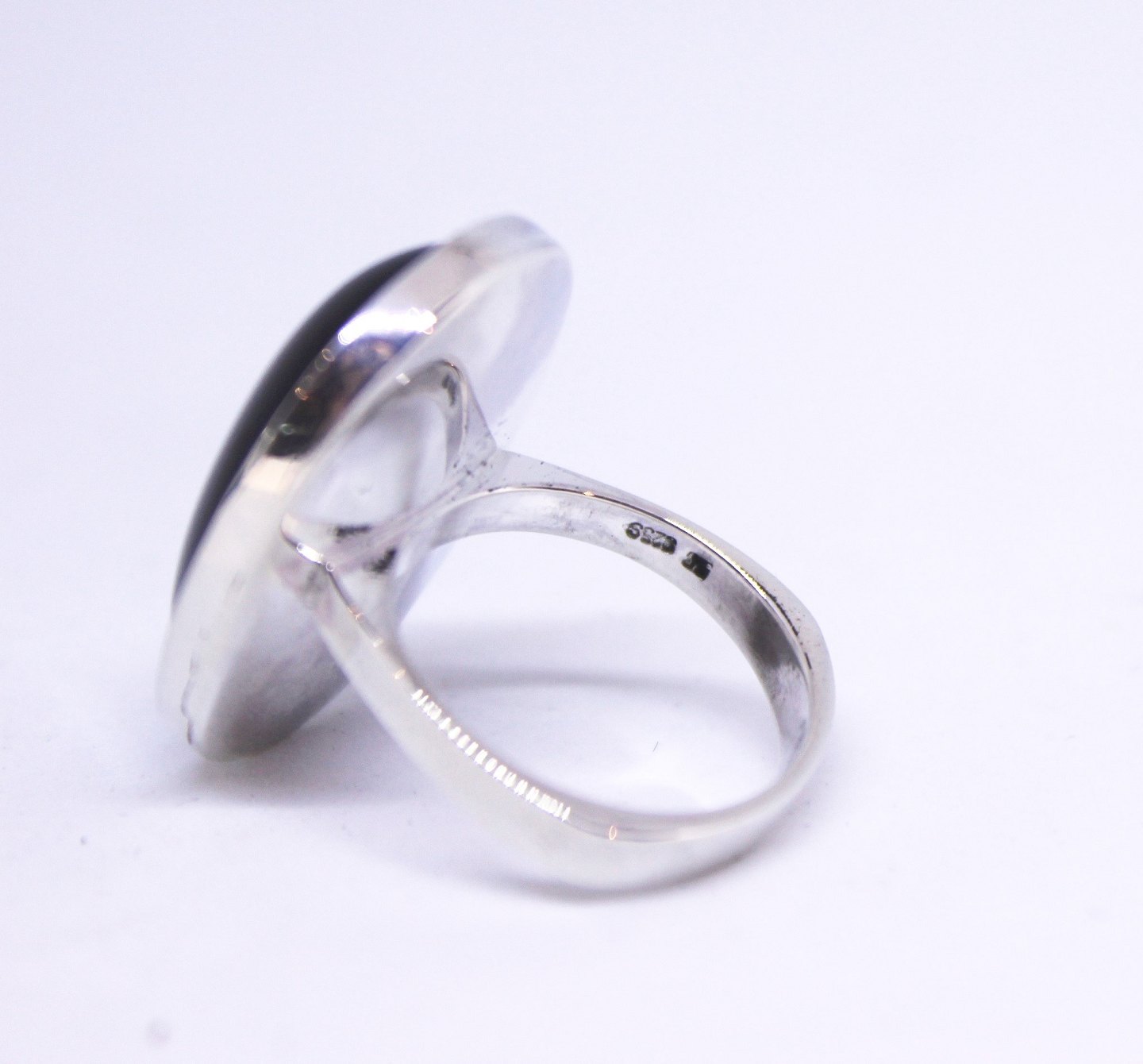Ring decorated with large black onyx stone and of 925 sterling silver.