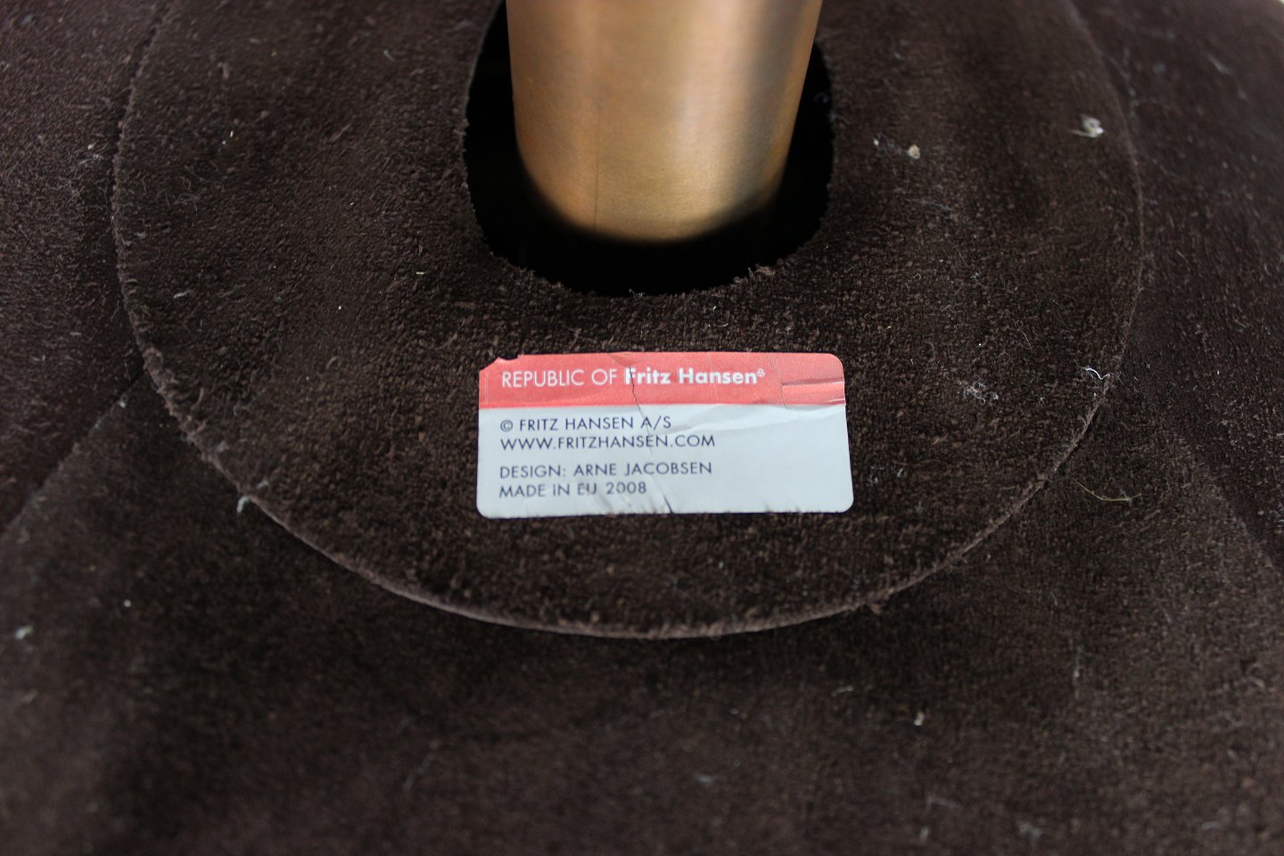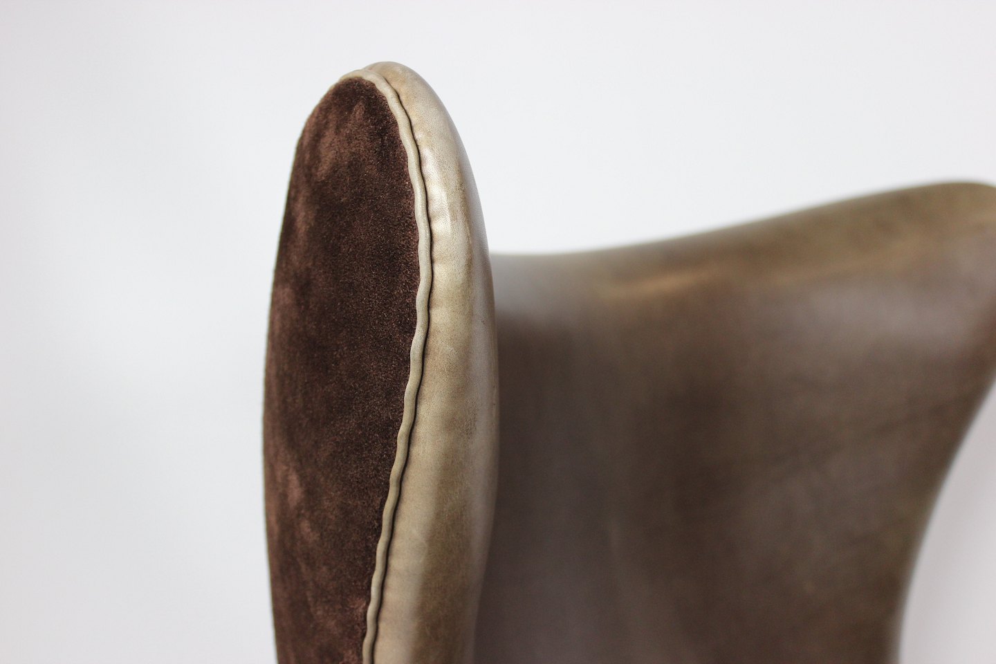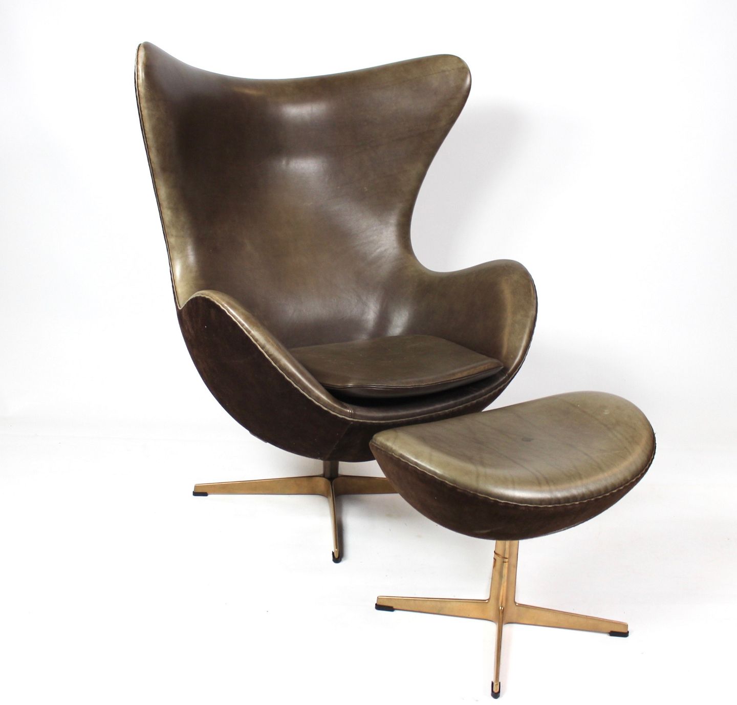SolgtSæt af ægget, model 3316, og tilhørende skammel designet af Arne Jacobsen i 1958 og fremstillet af Fritz Hansen i anledning af 50 års jubilæum for produktion af ægget. Ægget og skammlen er polstret med mørkebrunt læder og ruskind, med stel af massiv bronze. Sættet er fra 2008, hvor 999 styk blev fremstillet.