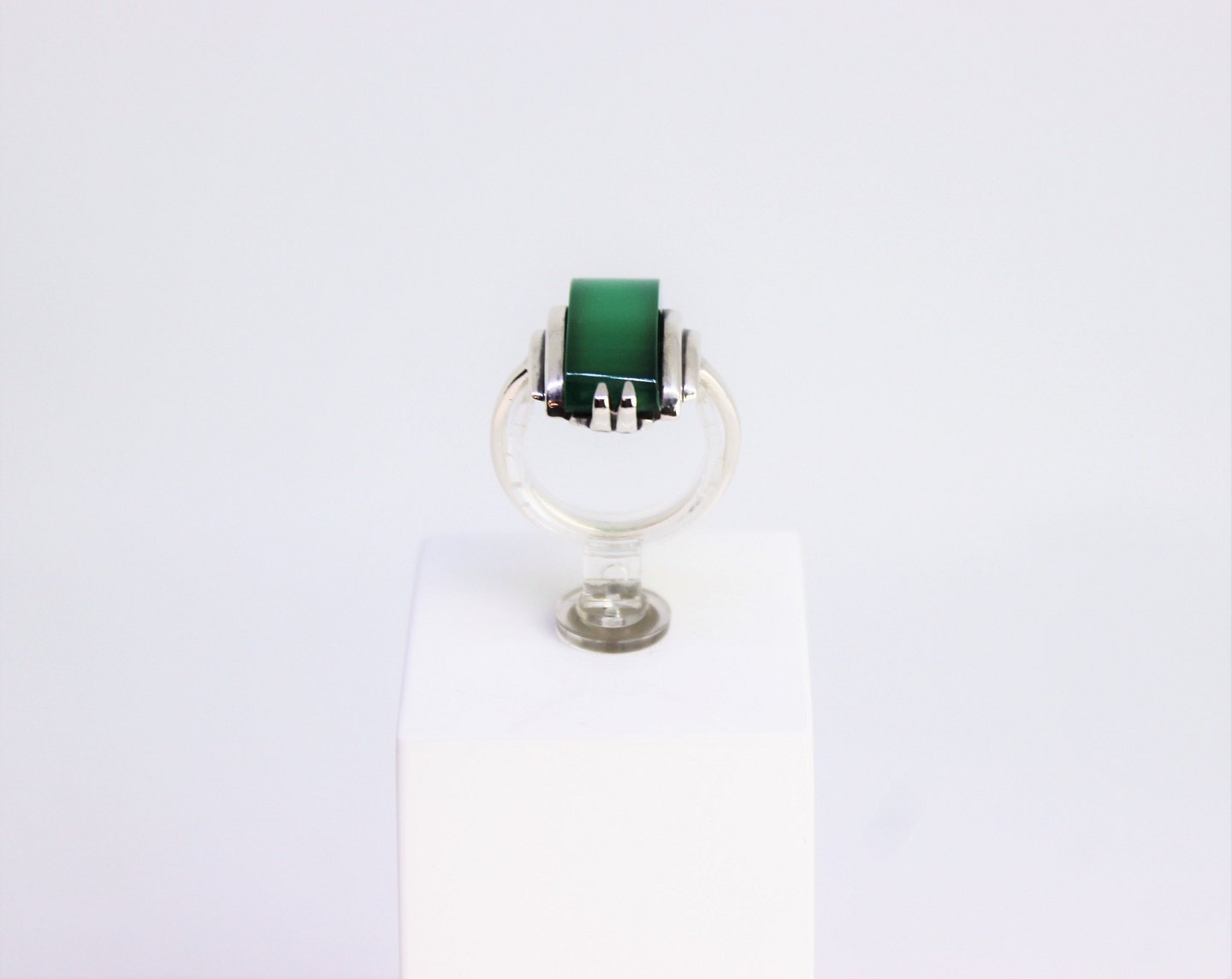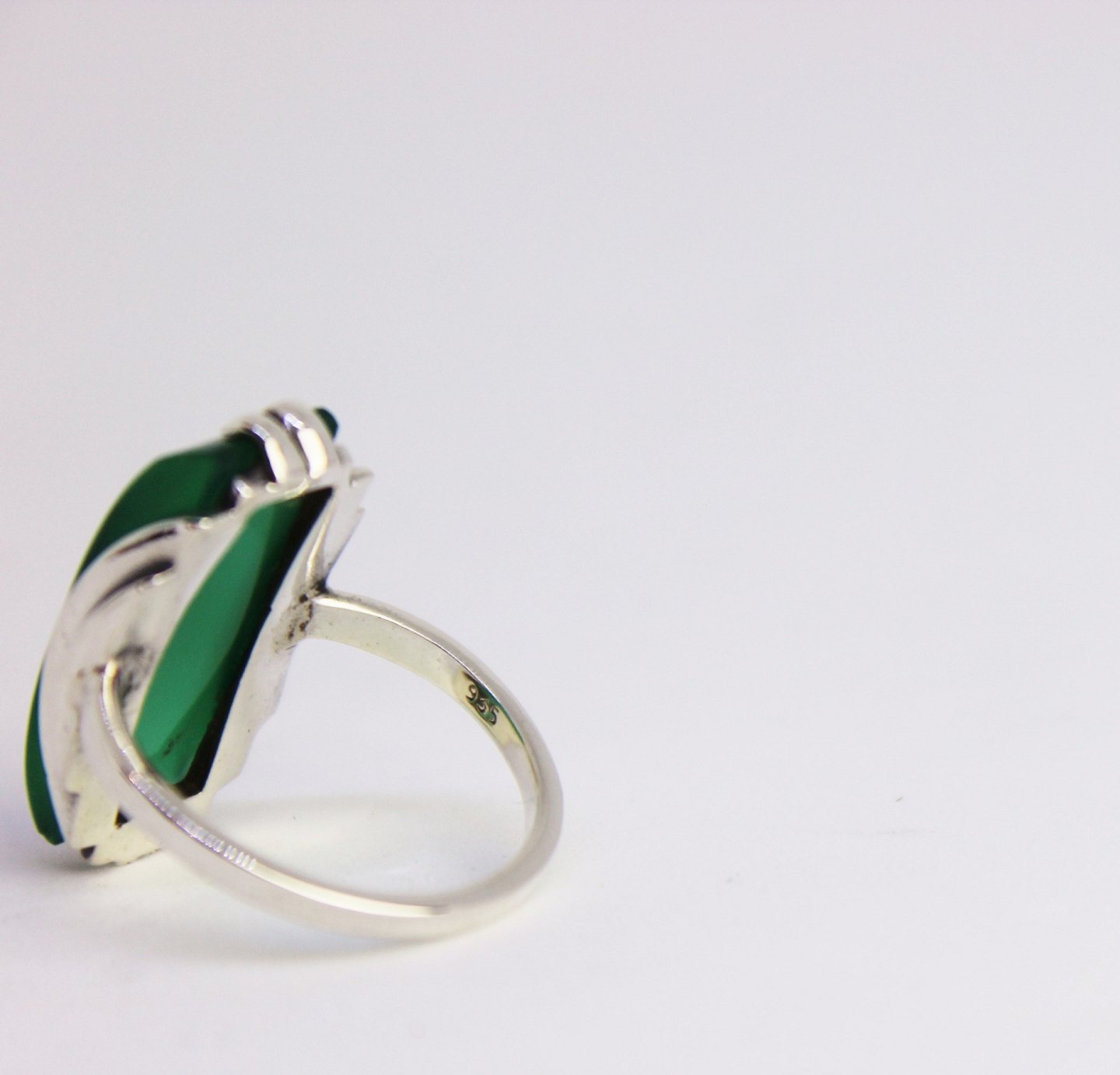 Ring of 925 sterling silver decorated with green jade.