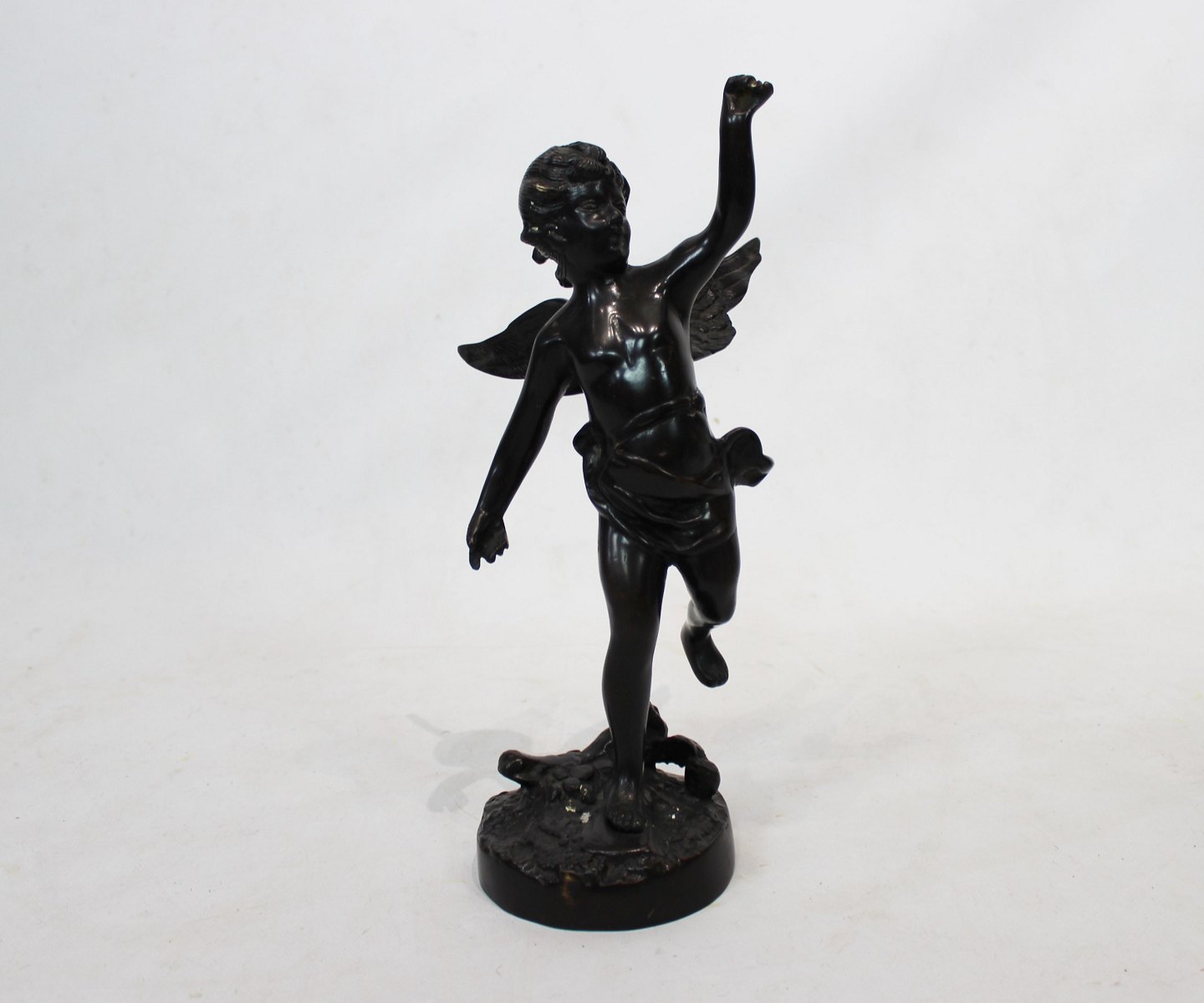 Italiensk skulptur af englemotiv af patineret bronze fra 1930erne. Figuren er i flot brugt stand.