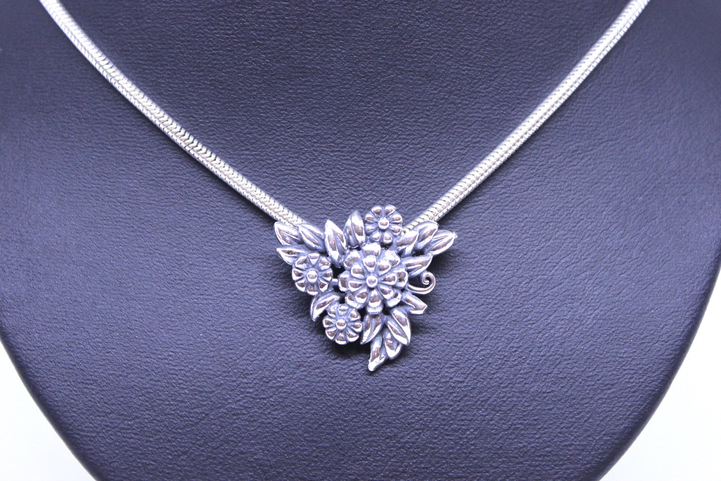 Halskæde med vedhæng i form af en blomst, af 925 sterling sølv.