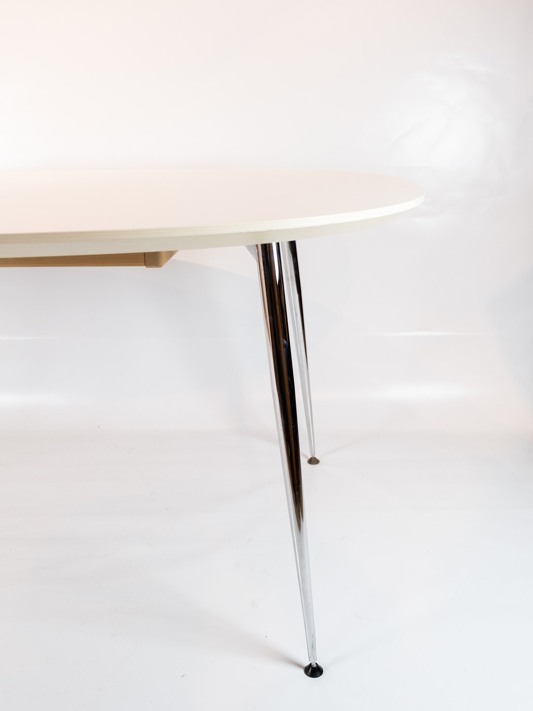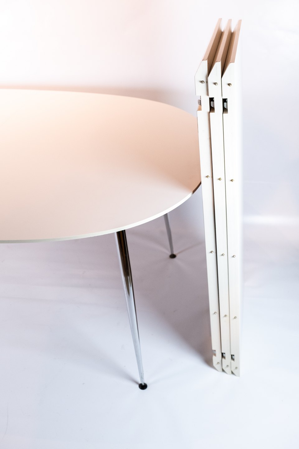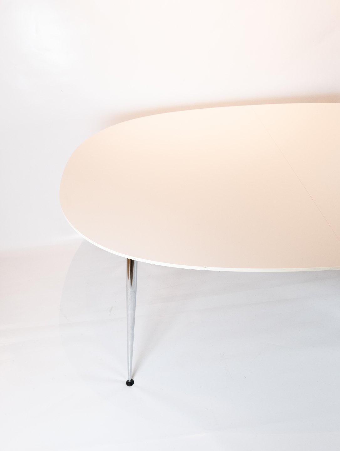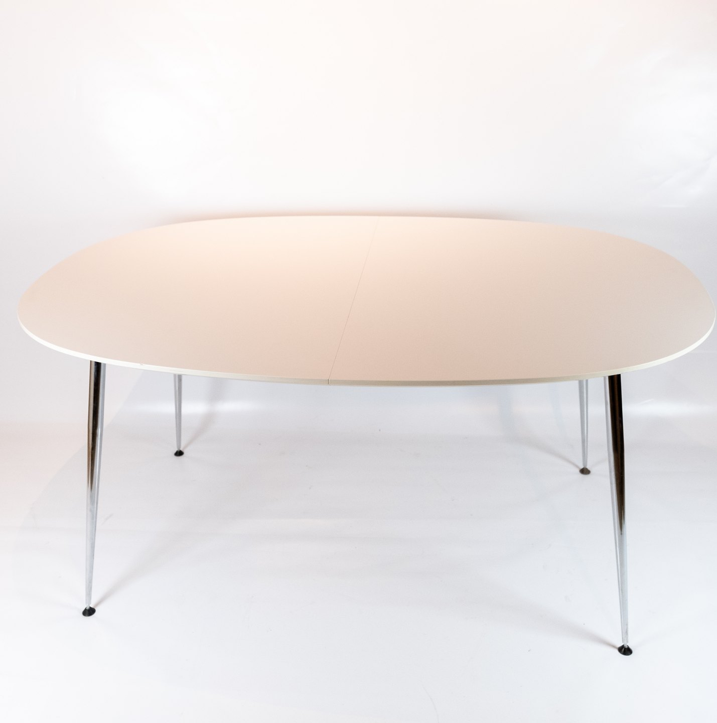 SolgtSpisebord i hvid laminat af dansk design fremstillet af Zeta Furniture. Bordet er i flot brugt stand.