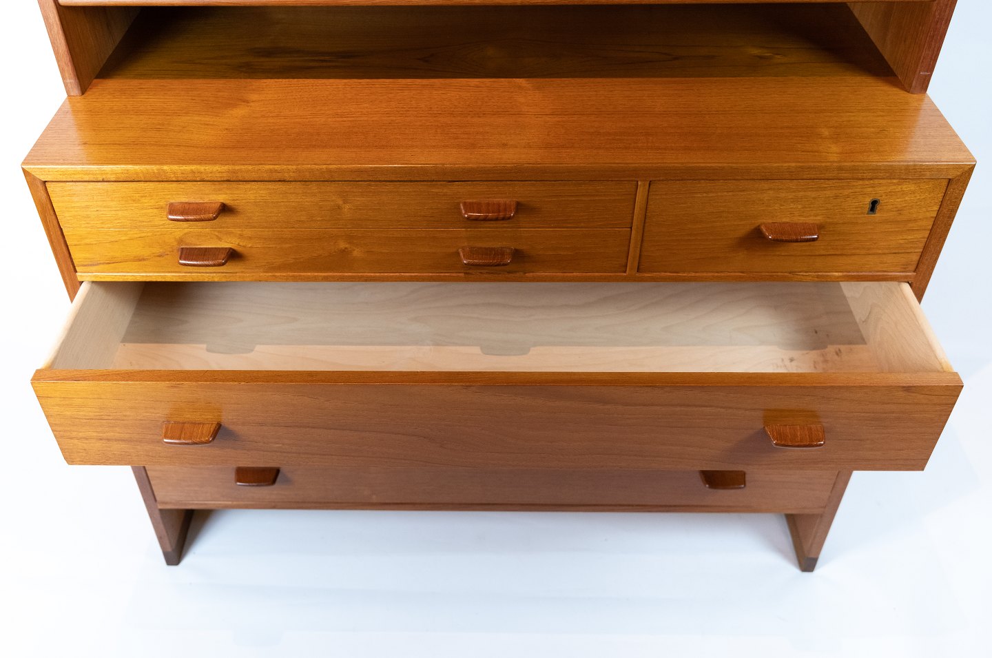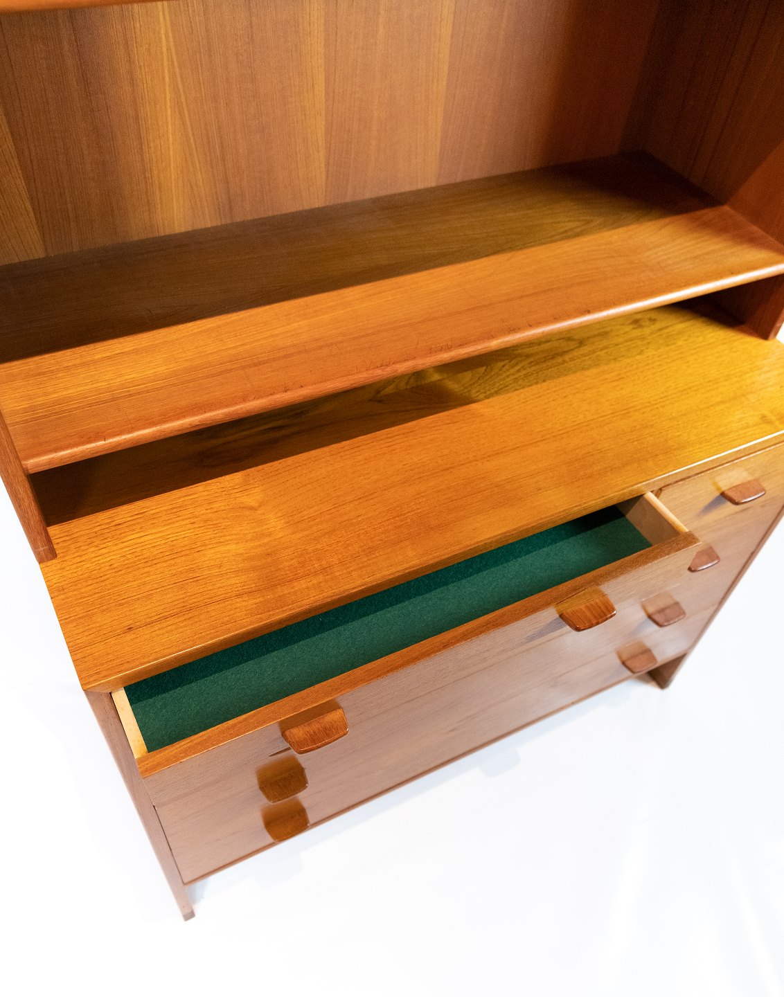 Please contact us for price informationThis bookcase, designed by renowned Danish architect Hans J. Wegner in 1960, is a timeless masterpiece of teak wood craftsmanship. With three large shelves and two smaller drawers, it provides ample storage space for your books and personal belongings. Wegner's unique design and focus on functionality and aesthetics ensure that this bookcase is not only practical, but also beautifully integrated into any room.