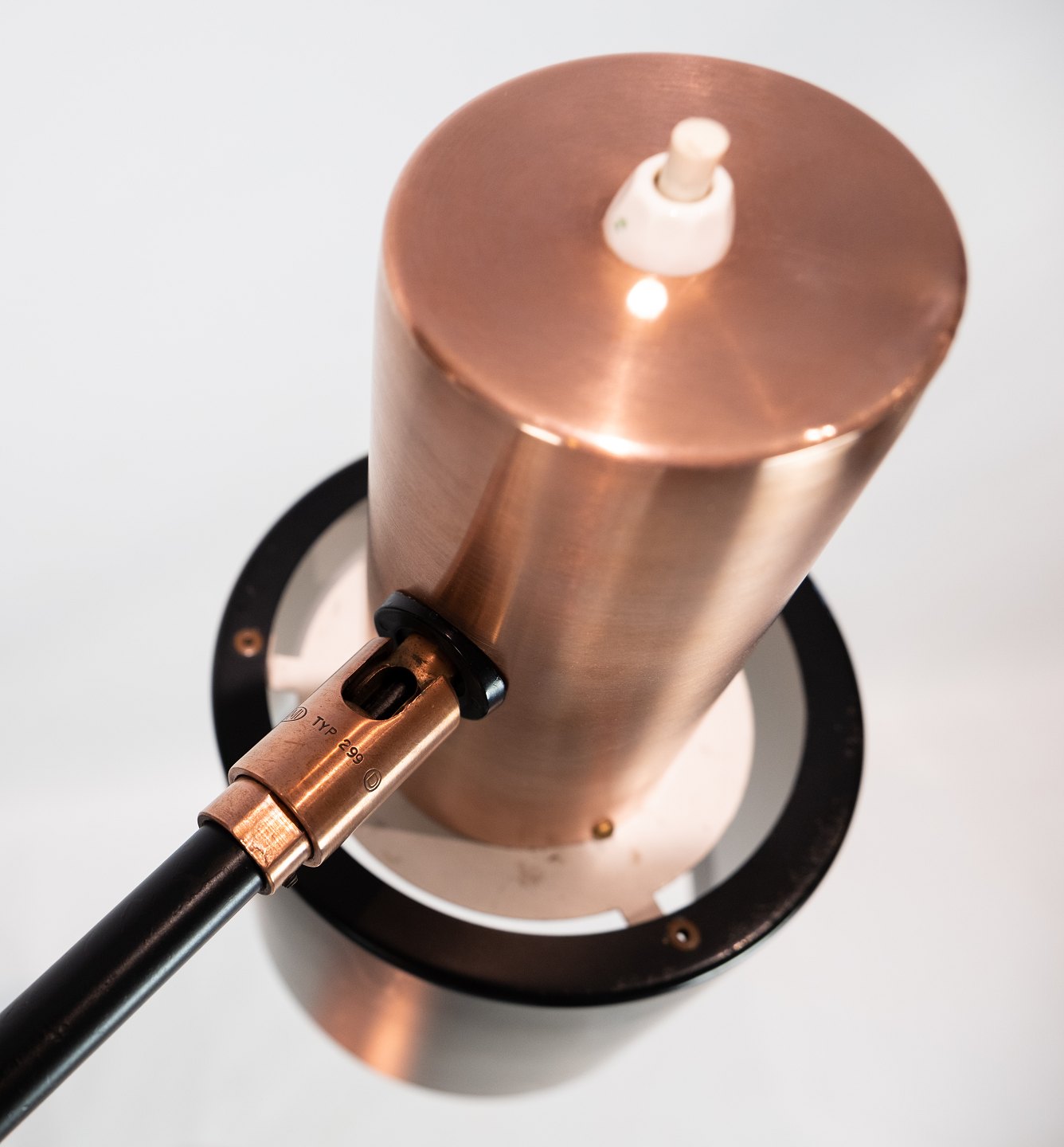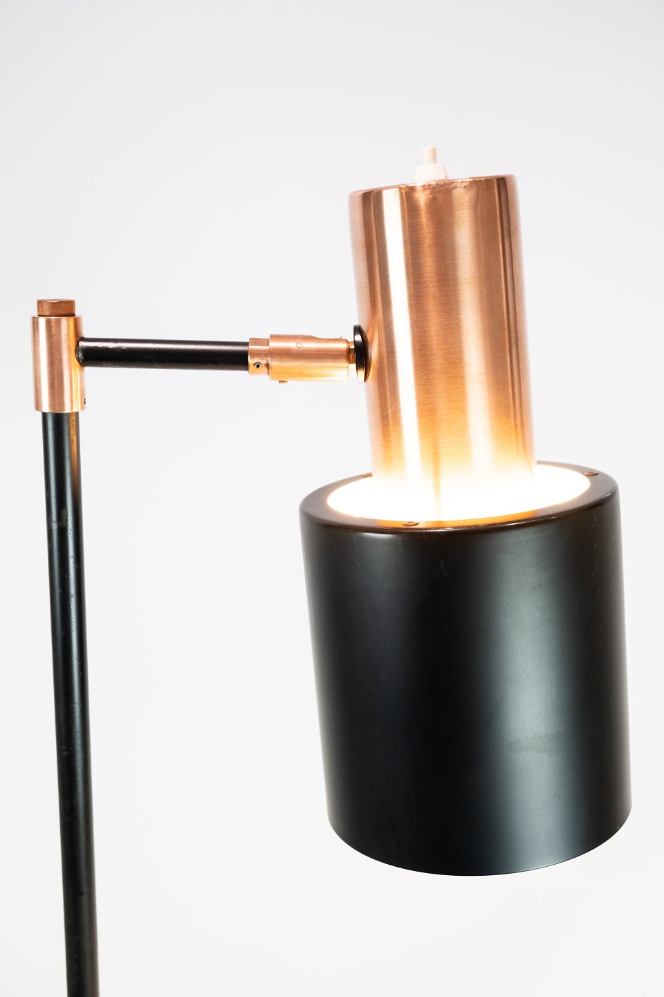 SoldFloor lamp, Studio, by Jo Hammerborg for Fog & Mørup from the 1970s. The lamp is of copper and black metal.