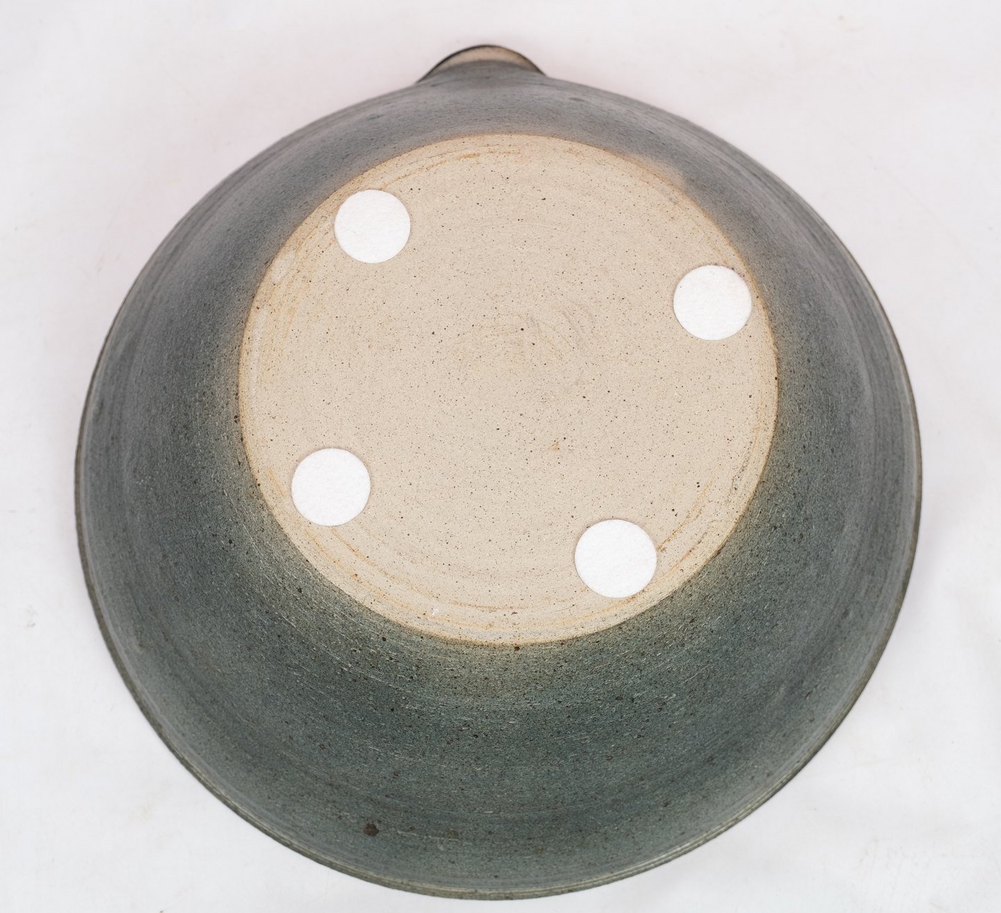 Stor grå keramik skål dekoreret med mønster indvendigt af Weiss. Skålen er i flot brugt stand.
