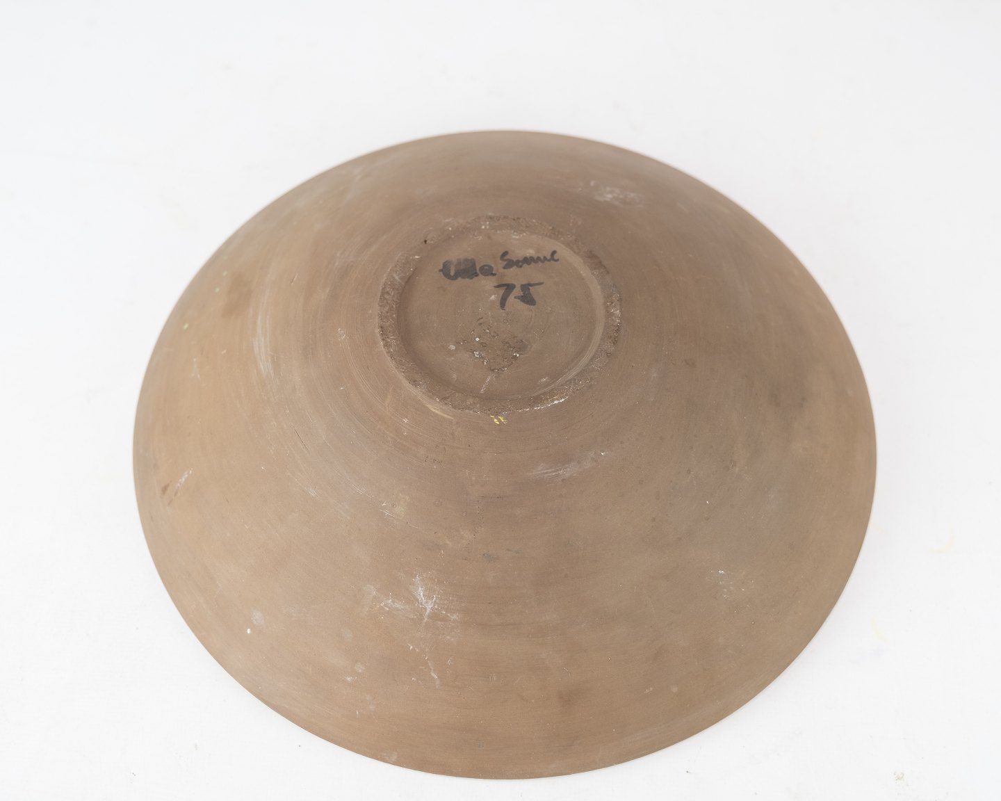 Keramik skål i mørke farver af Ulla Sonne fra 1975.