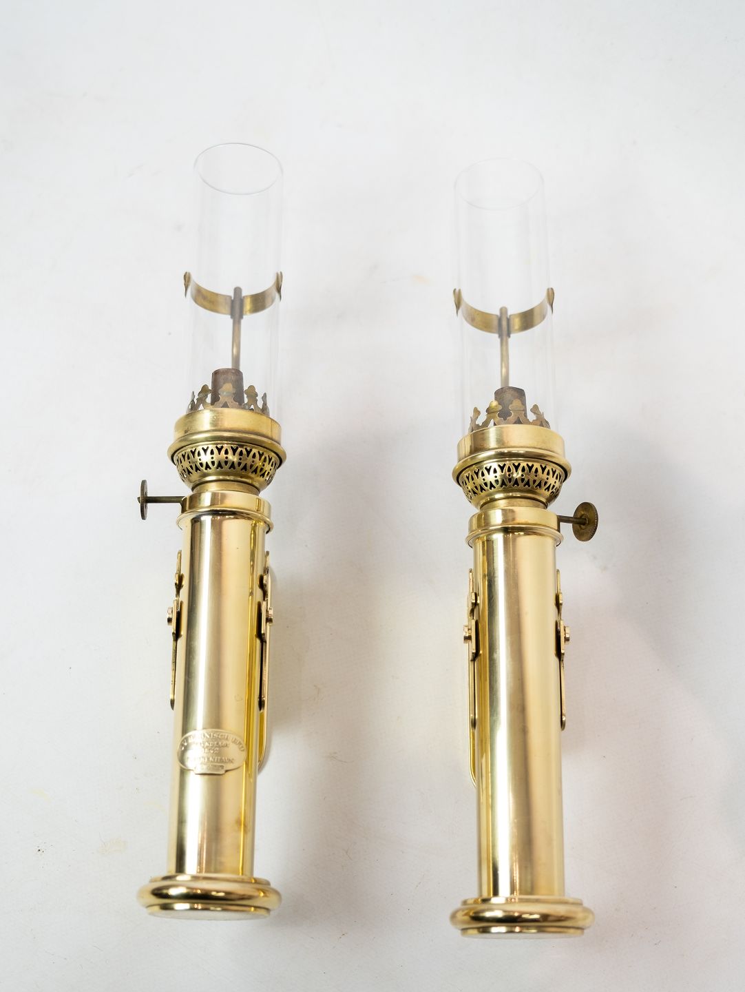 Et sæt vægstager i messing af G.V. Harnisch EFTF grundlagt i København 1842.