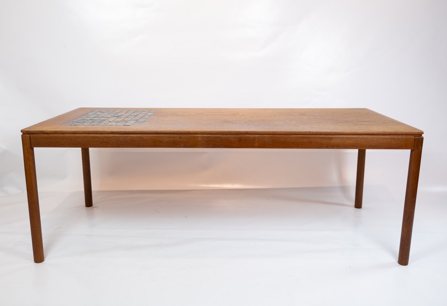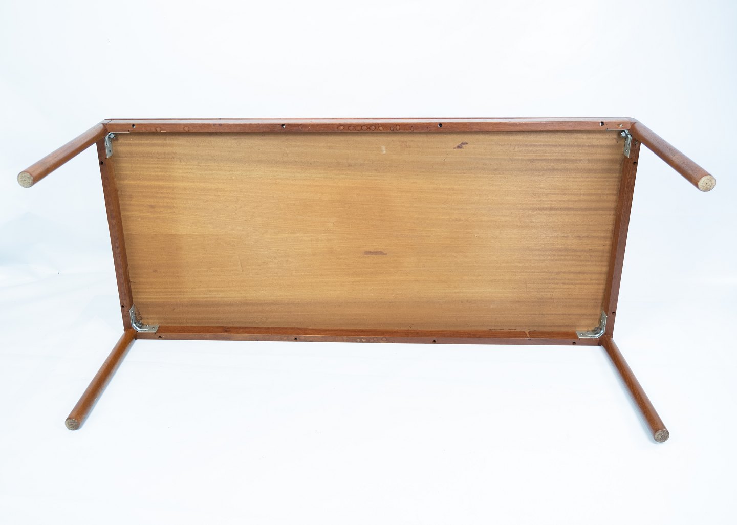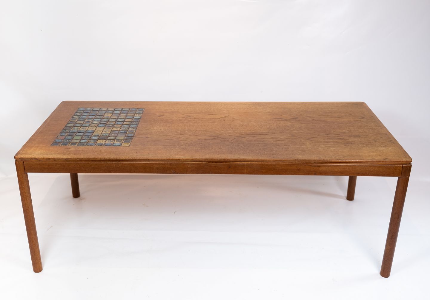 Sofabord i teak med klinker af dansk design fra 1960erne. Bordet er i flot brugt stand.