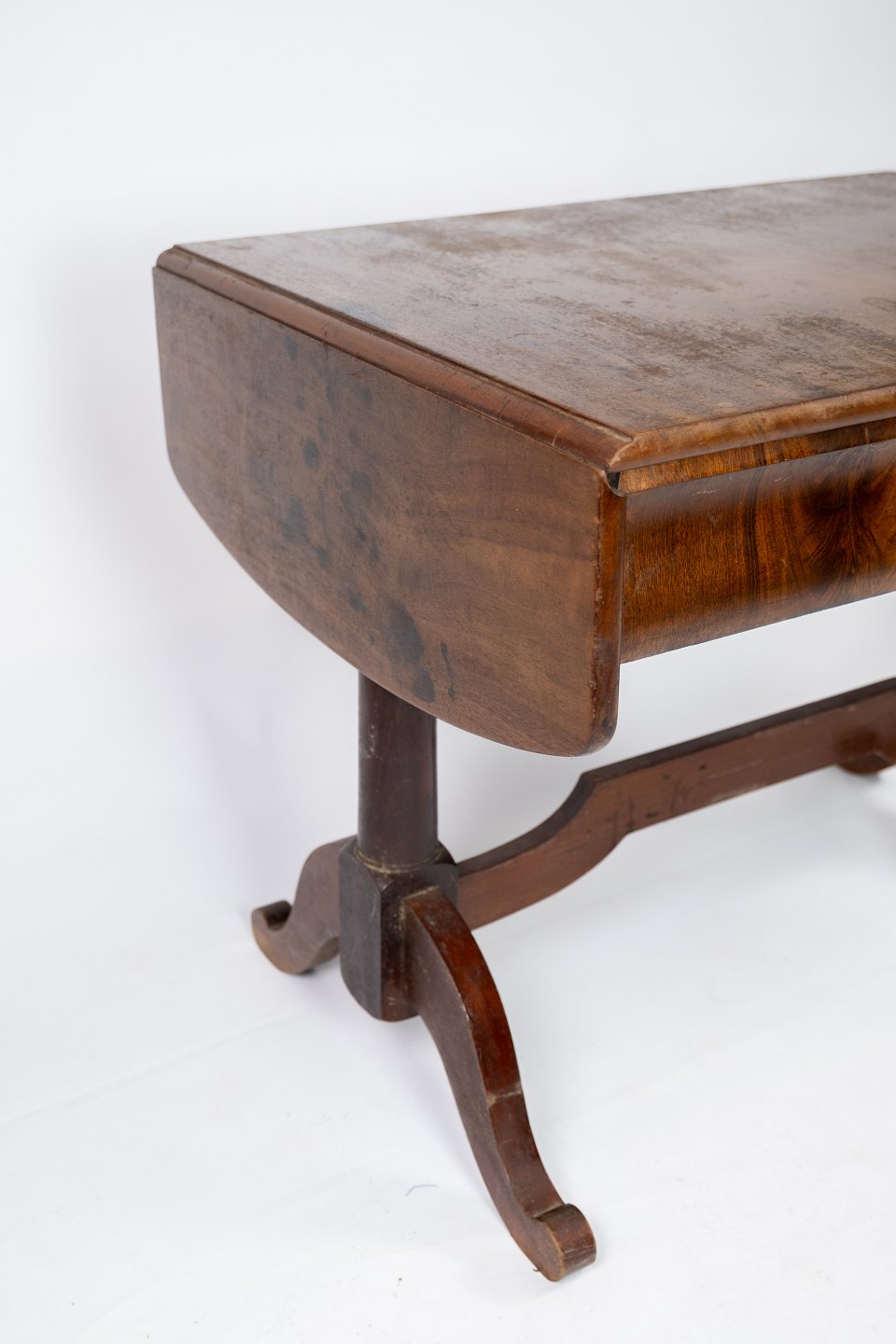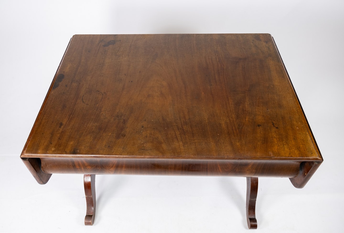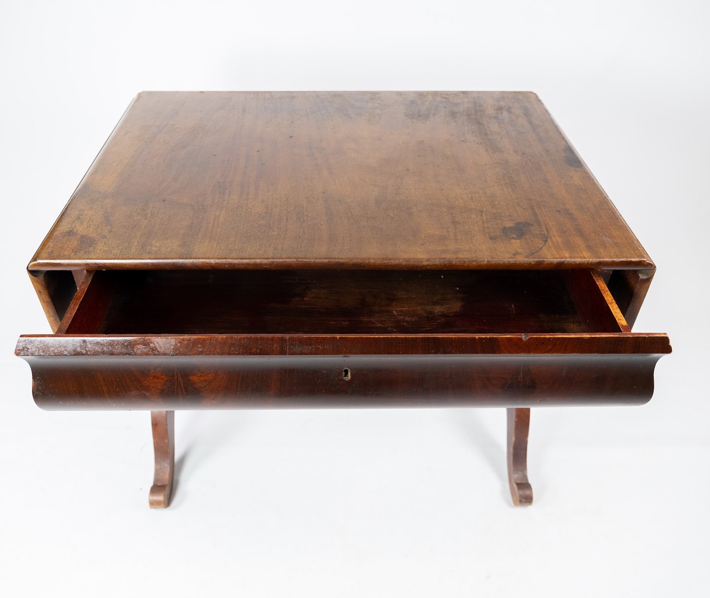 Antikt skrivebord af mahogni med skuffe og klapper fra 1860. Bordet er i flot stand.